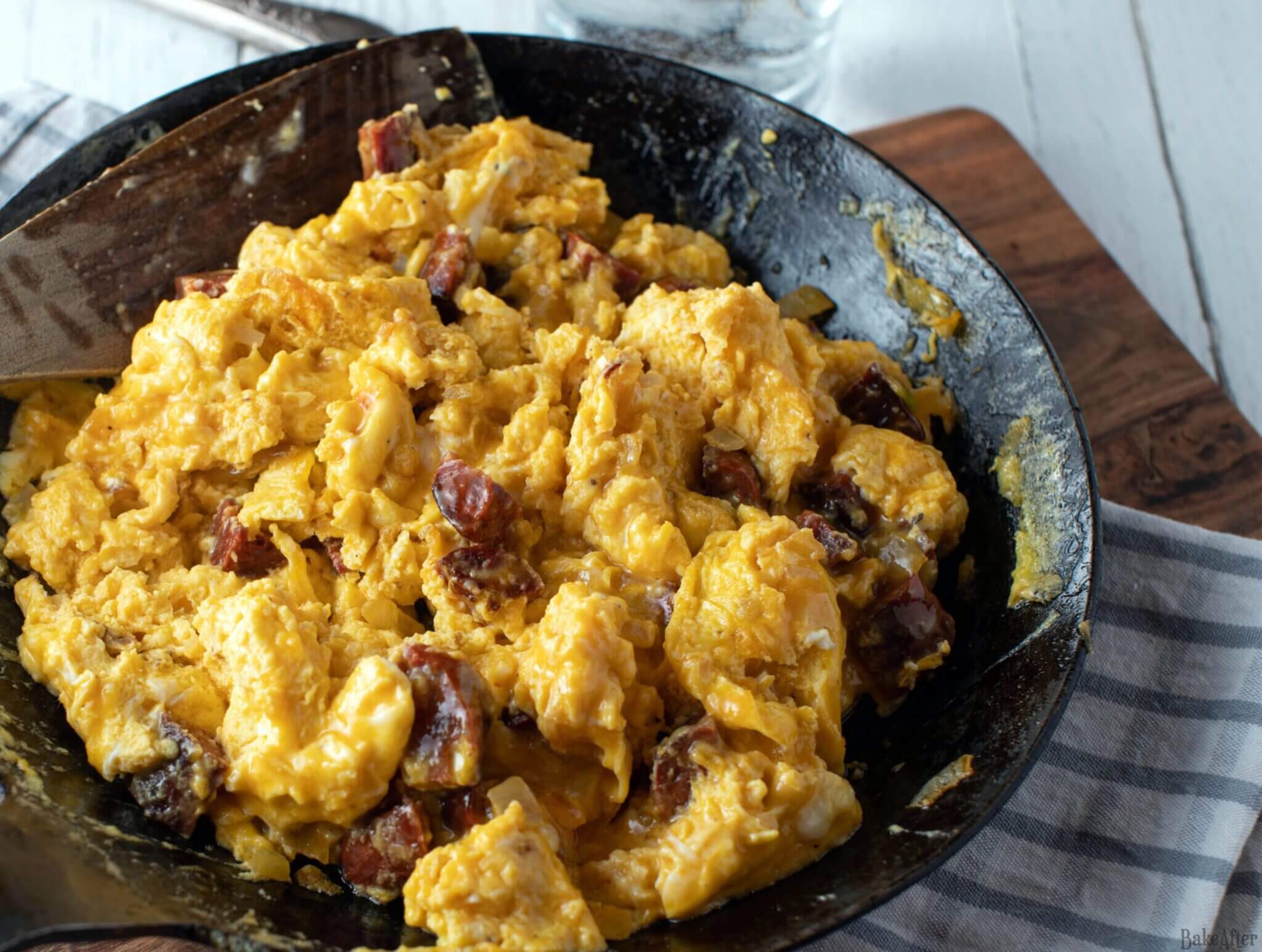 How to do it: Beat your eggs with a splash of milk or water (about 1 tablespoon per egg). Heat butter in a pan over medium heat, add the eggs, and stir frequently with a spatula, breaking up the curds as they form. Remove from heat when they’re still slightly wet – they’ll finish cooking from residual heat.