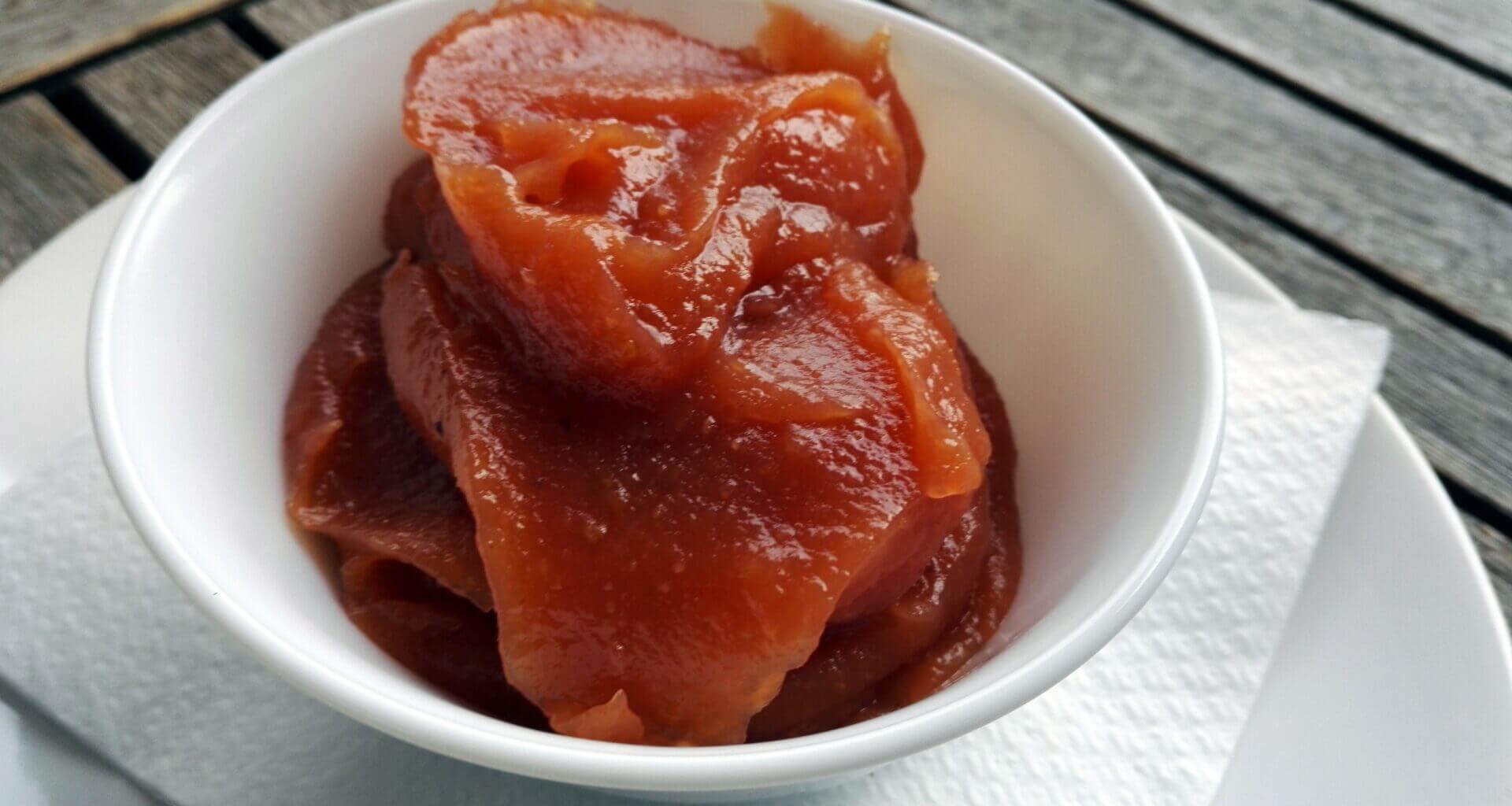 - Consistency: Firm, dense, and sliceable, similar to a very thick fruit leather or firm jelly that holds its shape completely;