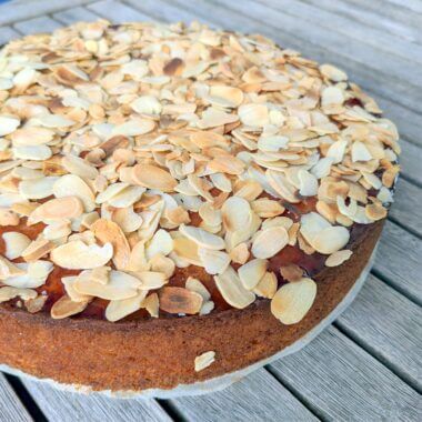 Fluffy Almond Cake with Sweet Jam and Crunchy Almonds