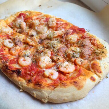 Homemade Fluffy Pizza with Pepperoni and Olives