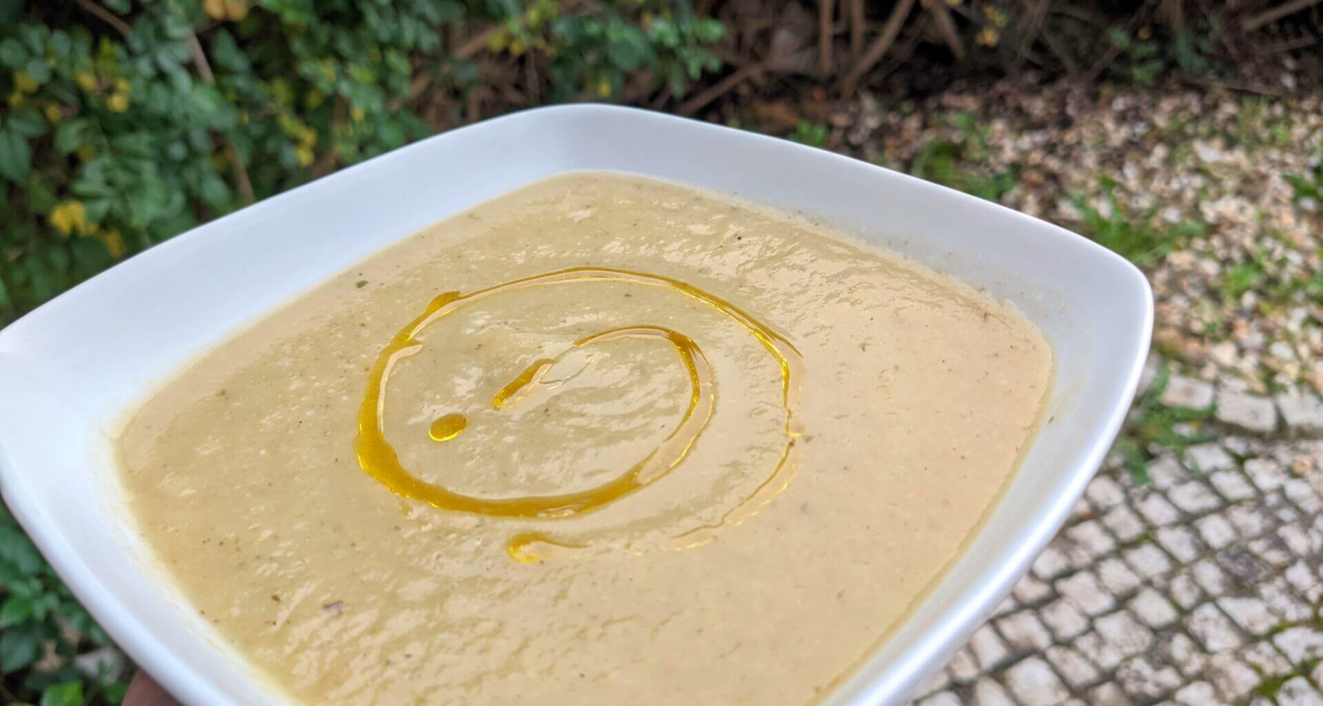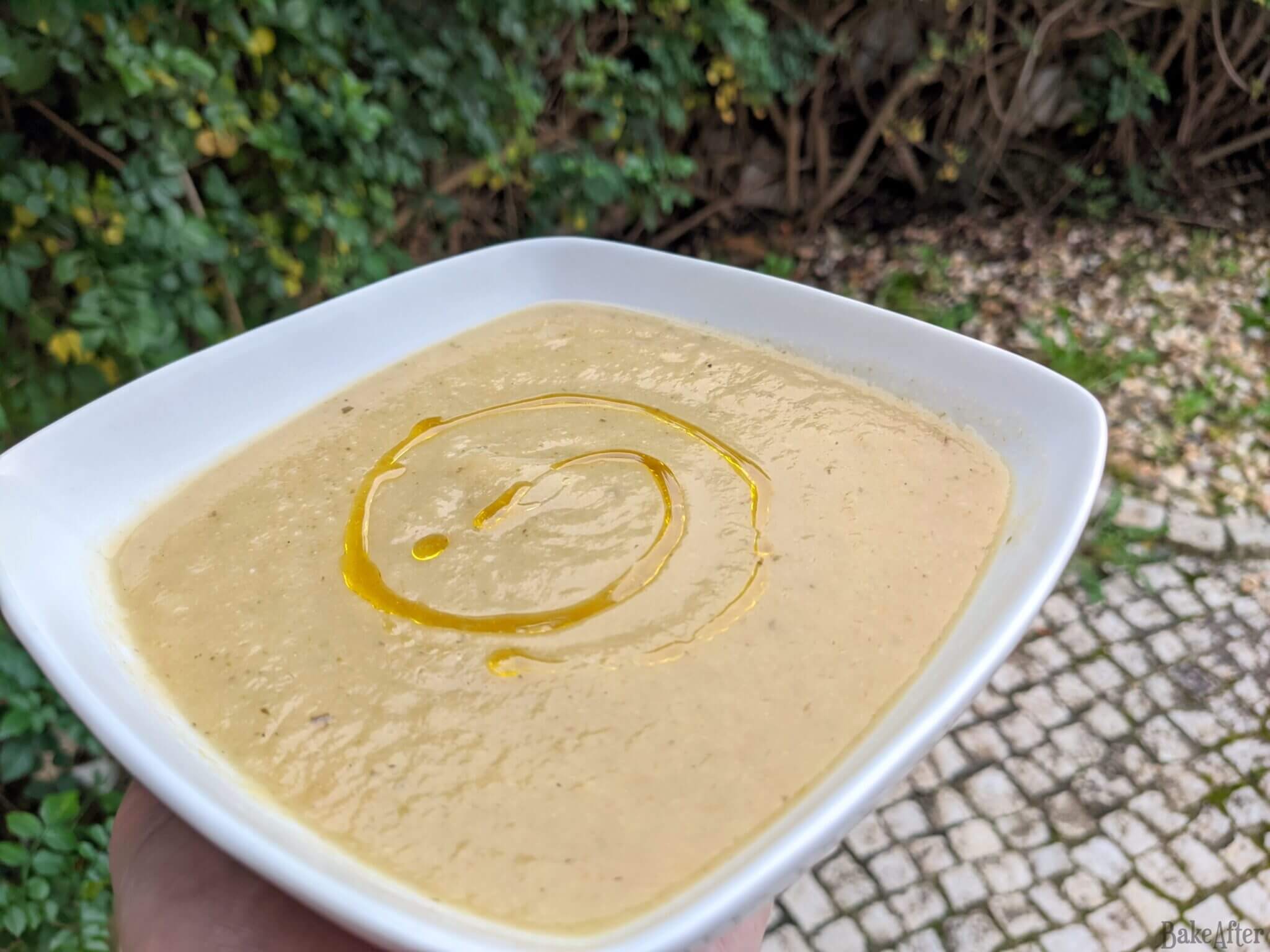 This recipe for Creamy Cauliflower Leaf Soup with Greens was originally created on BakeAfter.com. Esta receita de Sopa de Rama de Couve-Flor foi publicada em português no Iguaria.com.