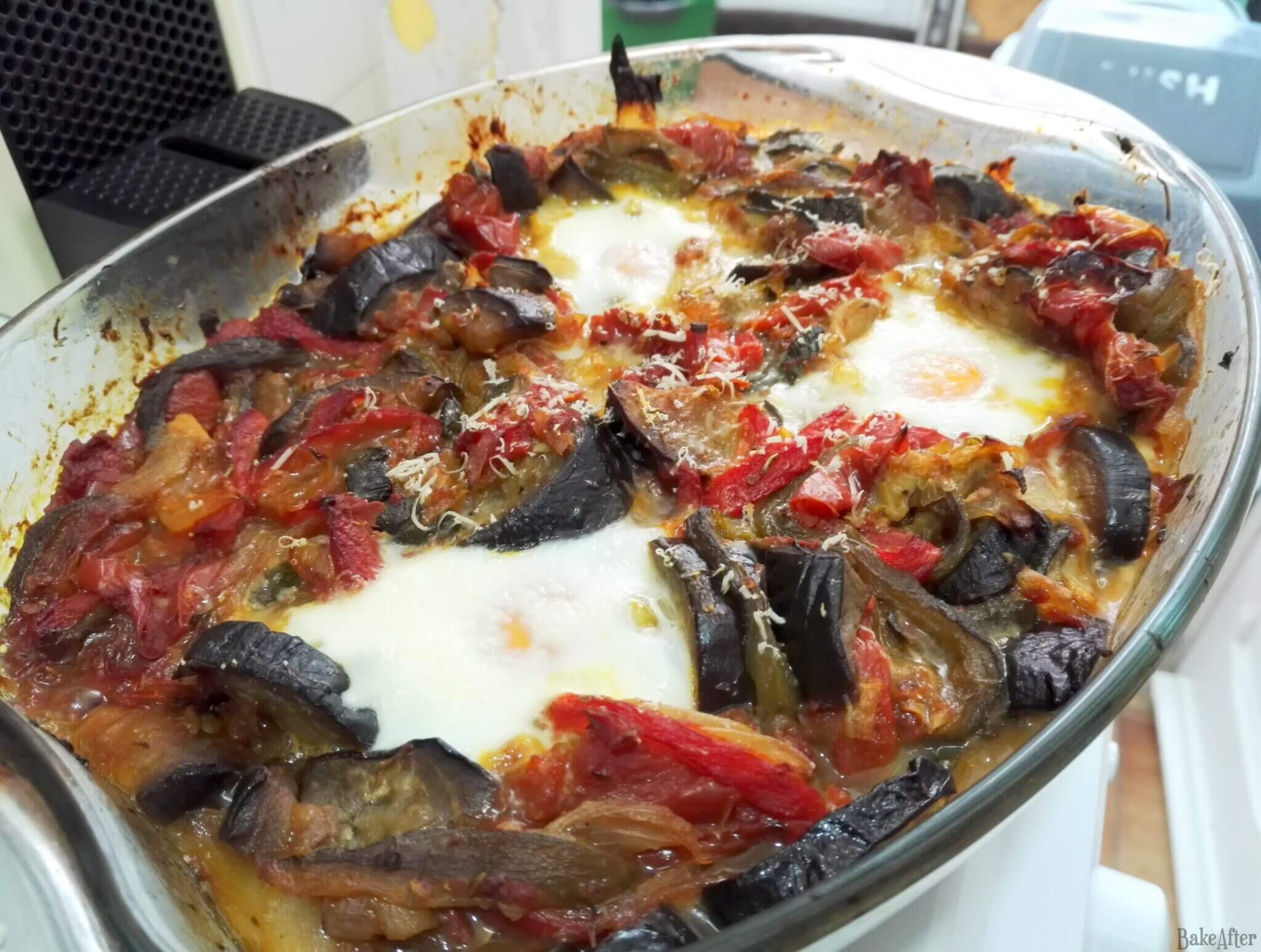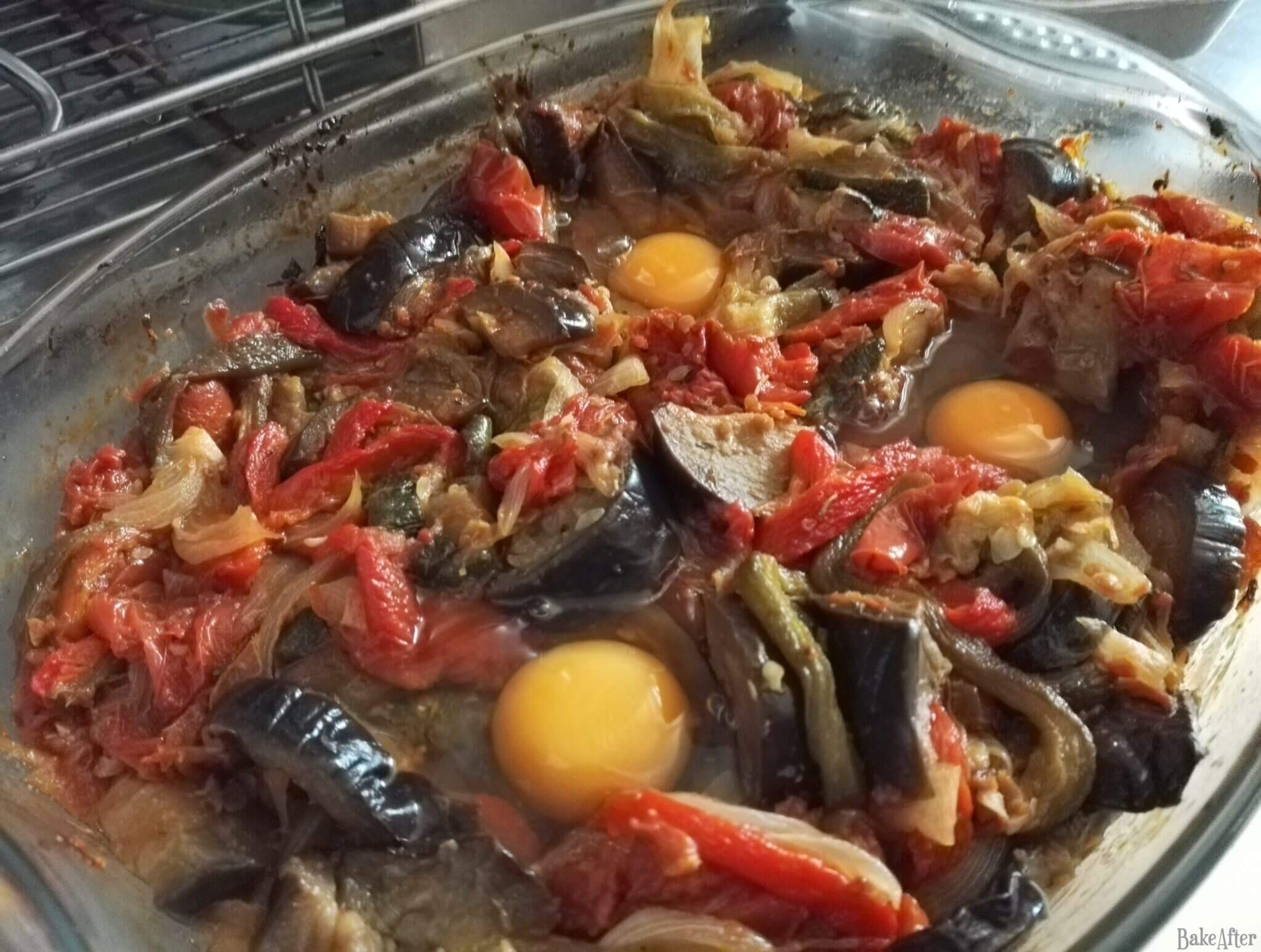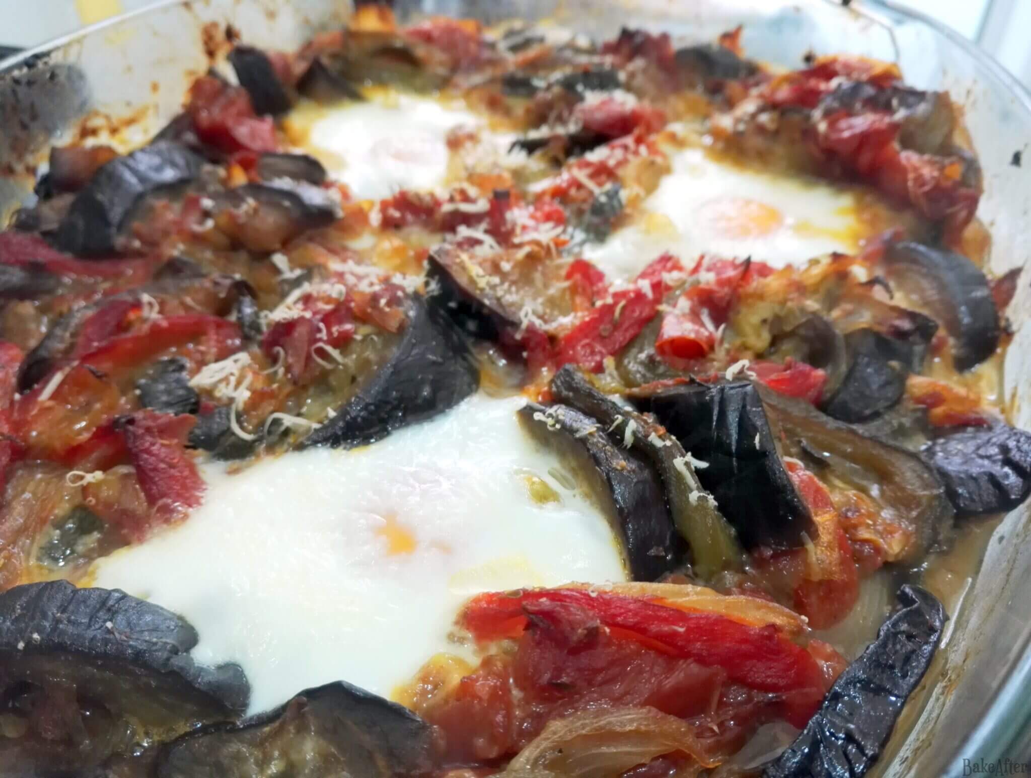 This recipe for Roasted Veggie Shakshuka with Fresh Eggs was originally created on BakeAfter.com.