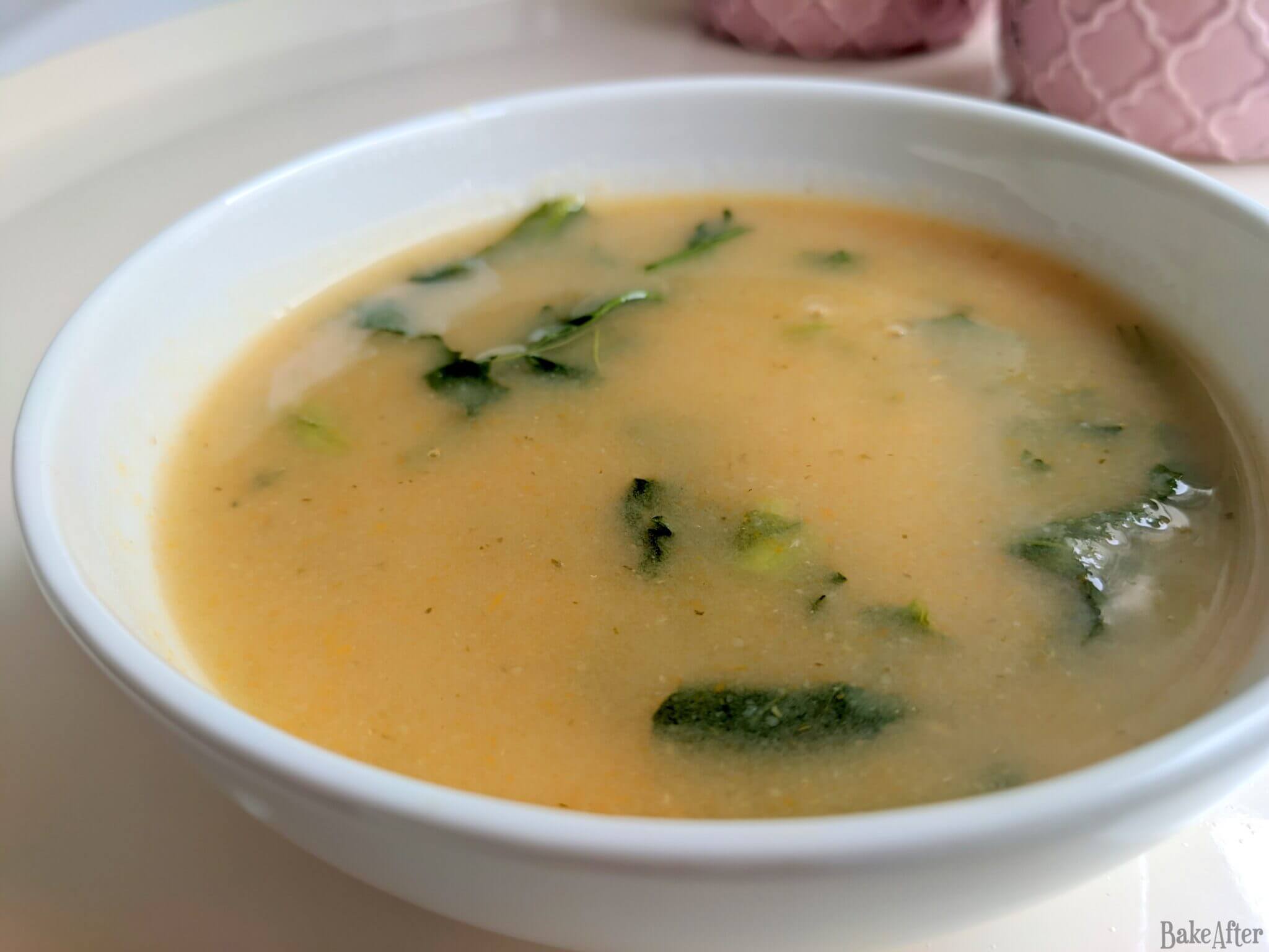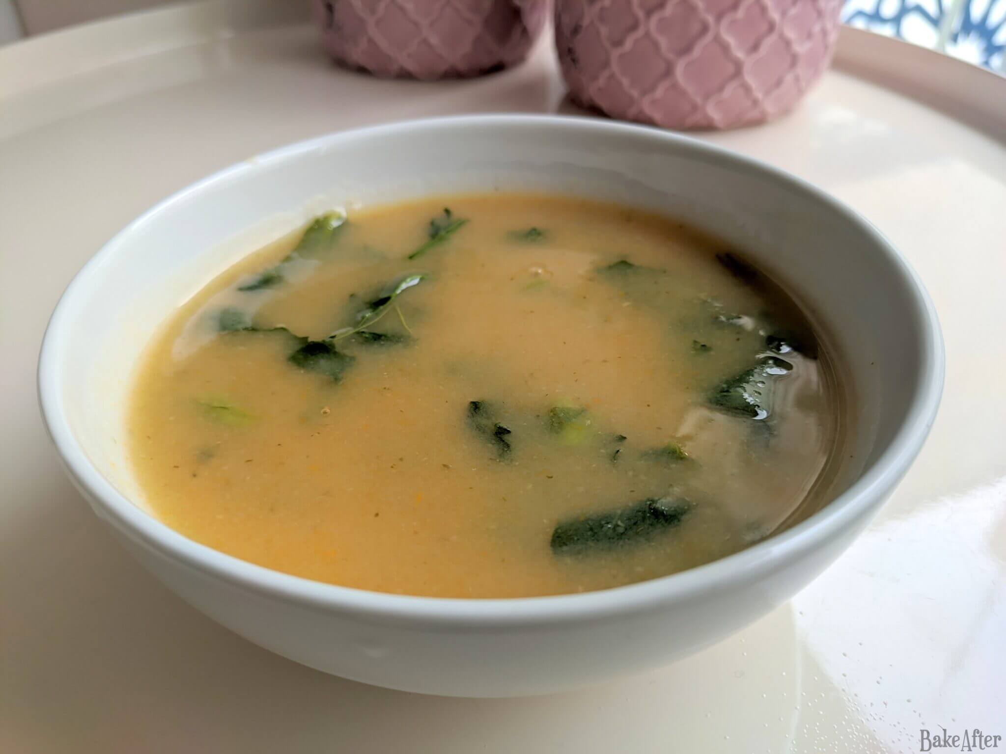 Cook the greens for only 5-10 minutes to keep their vibrant green color and prevent them from falling apart. So ideally add them when the soup is practically done. If you cook them too long they’ll turn brownish and lose a bit of texture.
