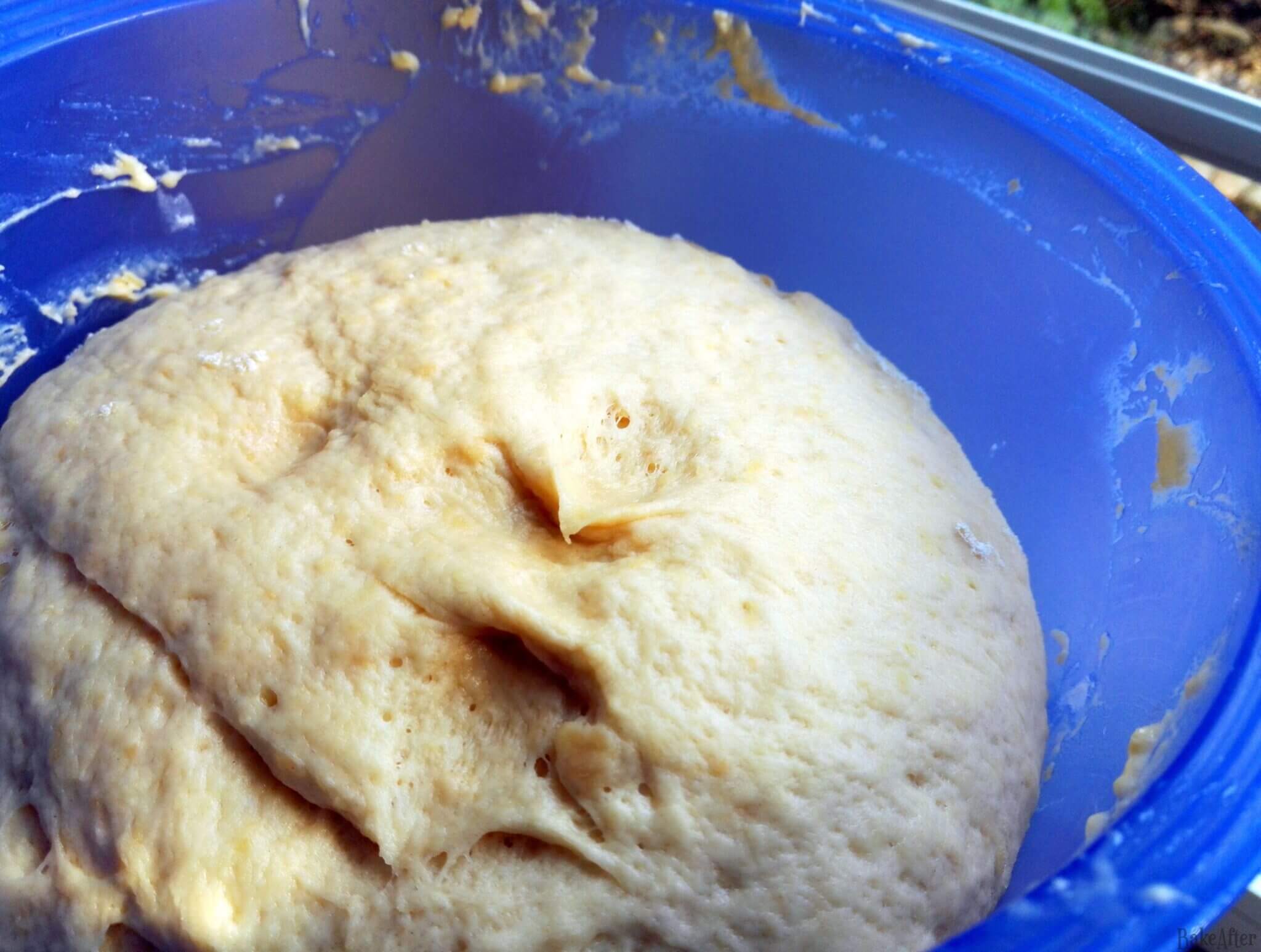 - Add the dissolved yeast and knead some more. Place the dough on a floured surface and knead until it is elastic, shiny, and smooth.