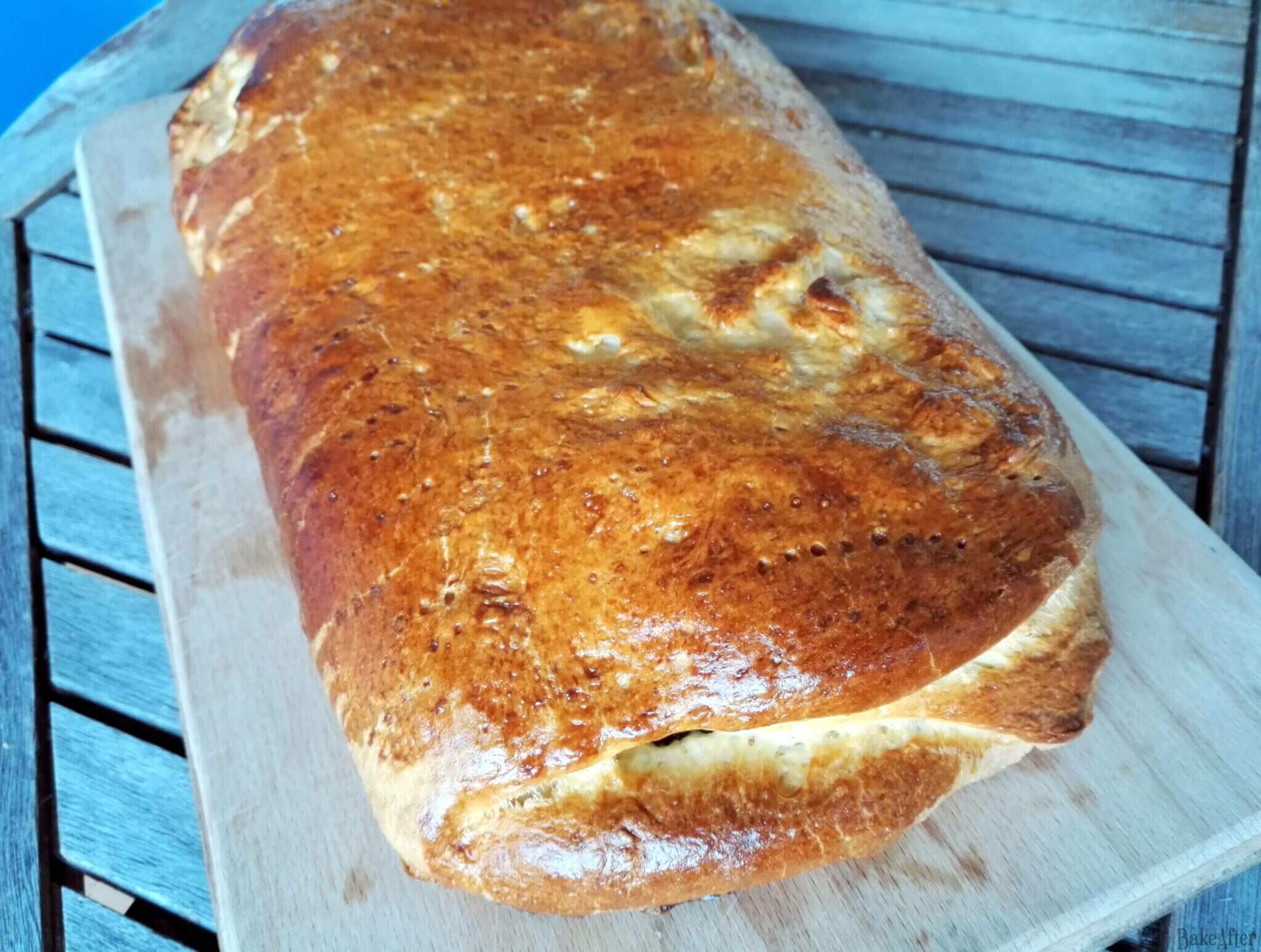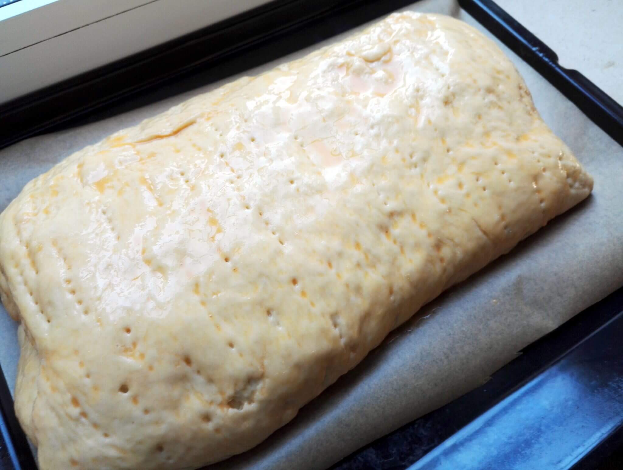 - Prick the surface of the bread dough and brush with the whisked egg. Bake on a baking sheet lined with parchment paper for about 25 minutes or until golden brown and your house is filled with a delicious aroma of baked bread. And it’s ready to serve! Enjoy!
