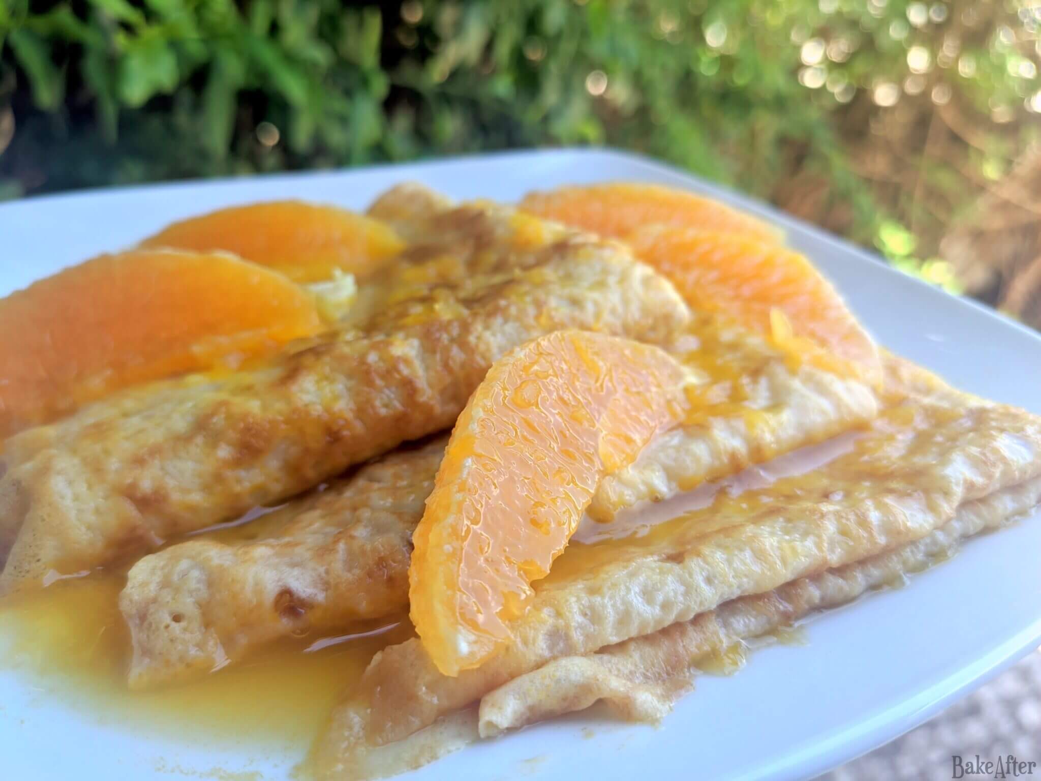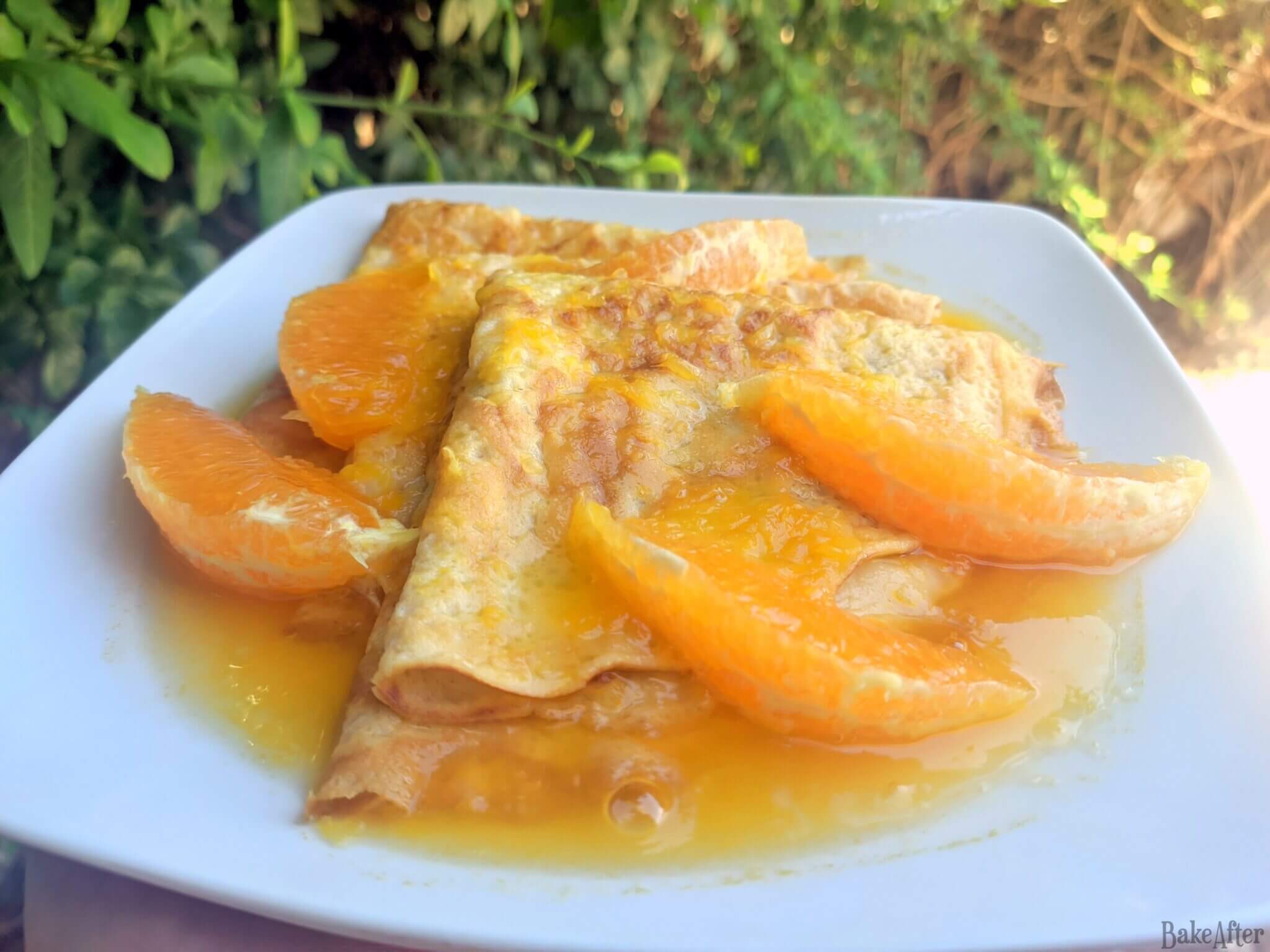 I used my classic crepe recipe (which never fails, no point in changing it), and went with Grand Marnier because it’s the most traditional liqueur, but you can use another orange liqueur like Orange Curaçao or Triple Sec without any problems. The oranges should be super sweet ones, but it’s also common to use other sweet citrus like tangerines ;D