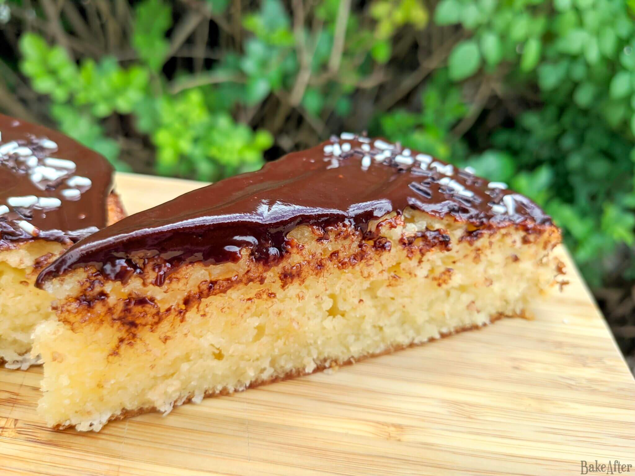 Brazilian Style Fluffy Coconut Cake with Chocolate Ganache Frosting