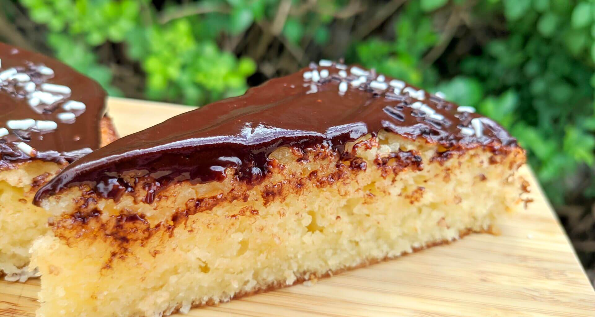 Brazilian Style Fluffy Coconut Cake with Chocolate Ganache Frosting