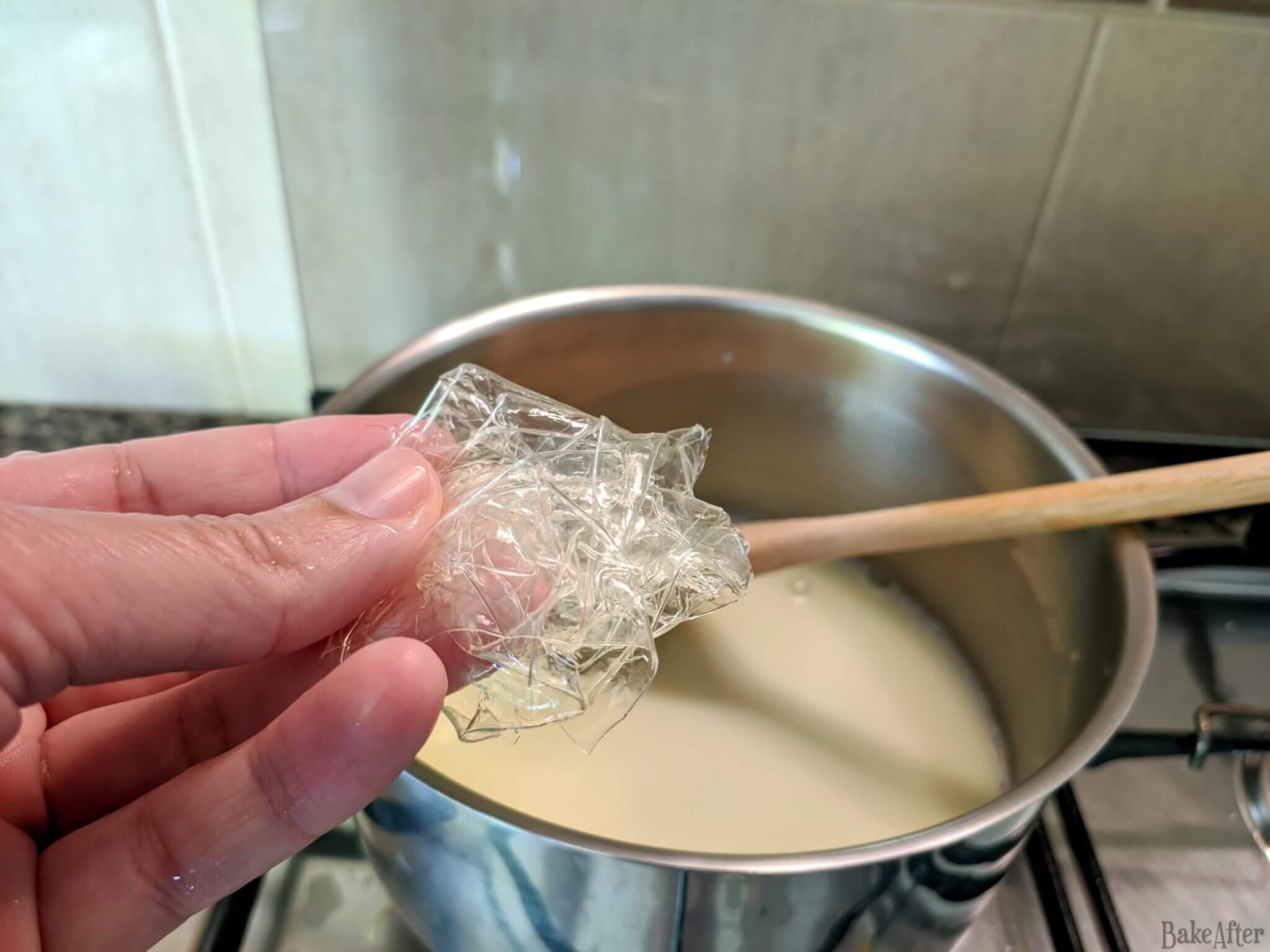 - In a separate bowl with water, add the gelatin and let it hydrate in the water for about 8 minutes until it becomes very malleable.