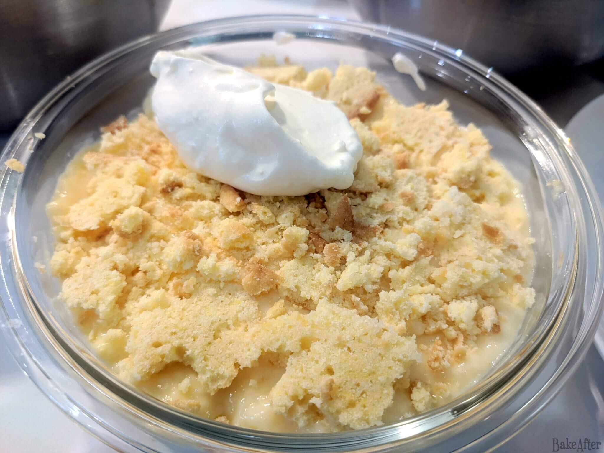 Also use different types of pudding, I used basic vanilla, but you could use chocolate, strawberry, or even banana pudding, it’s up to you! It’s also common to top with meringue and torch it, or swap the cookies for another type of cookie to your liking, or even cake. You can also make it like I did in a bowl, but you could also make it in individual cups or glasses, it’s also common to make it in mason jars, which makes it more practical to store and transport for things like picnics.