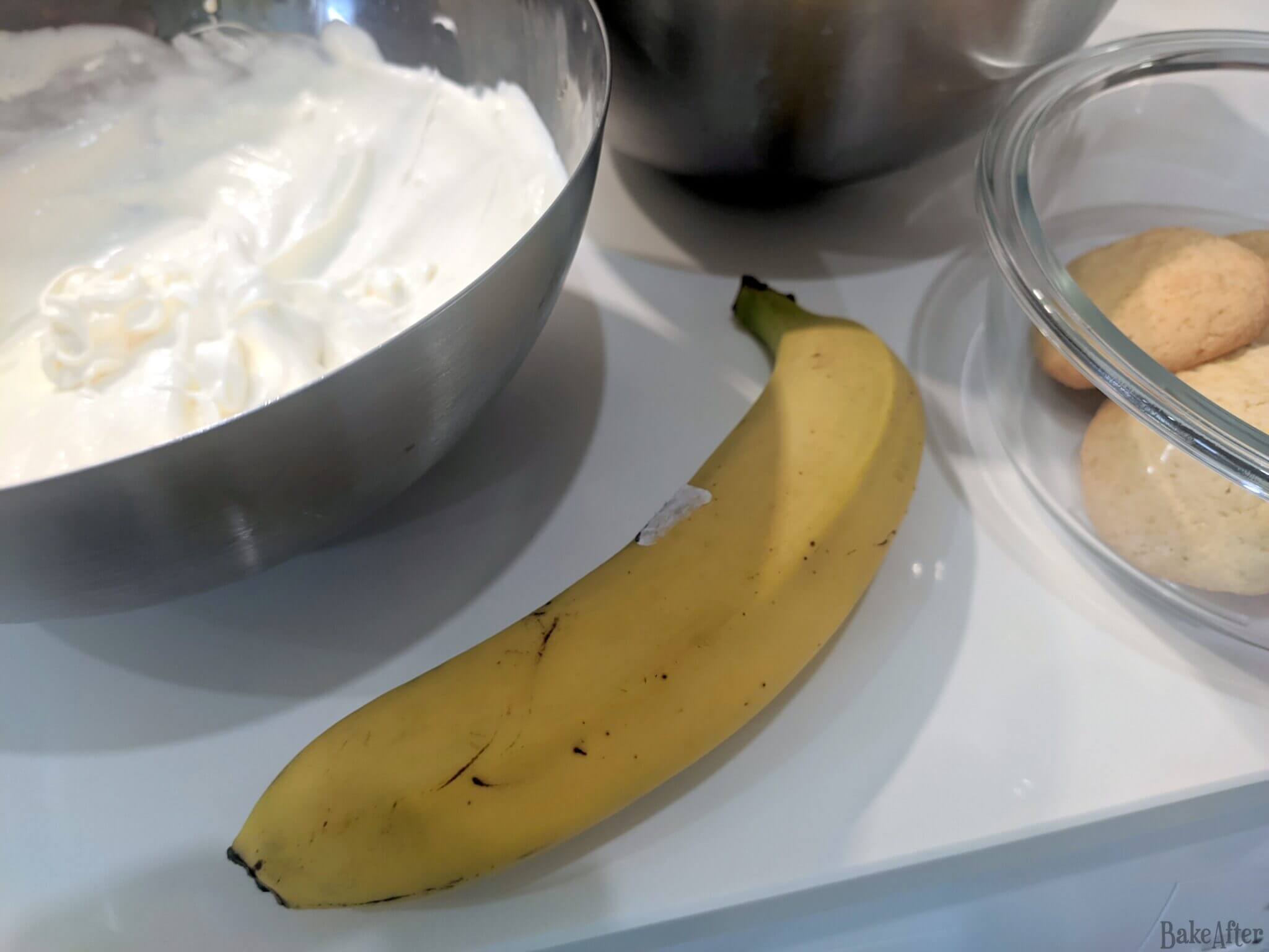 - Peel and slice the bananas. If you love bananas, you can add more, but I prefer the cream and cookies, so 2 thinly sliced bananas were enough.
