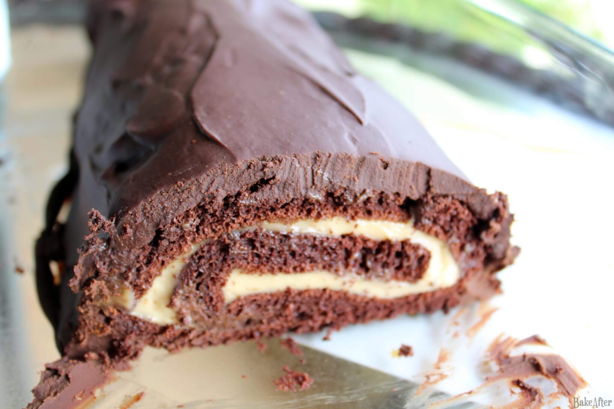 Lets enjoy this homemade a bit Portuguese Styled Chocolate Yule Log with a Creamy Baker's Custard, hey nothing like trying new things!