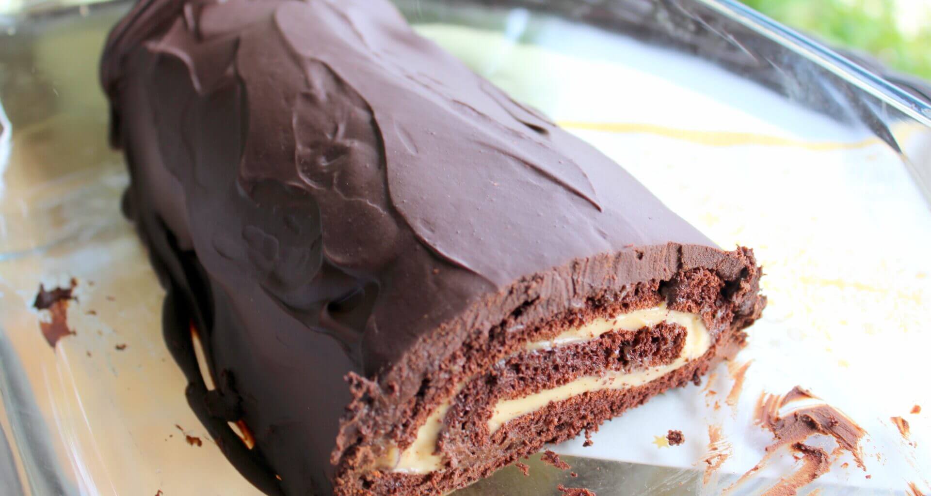 Homemade Chocolate Christmas Yule Log with a Baker's Custard