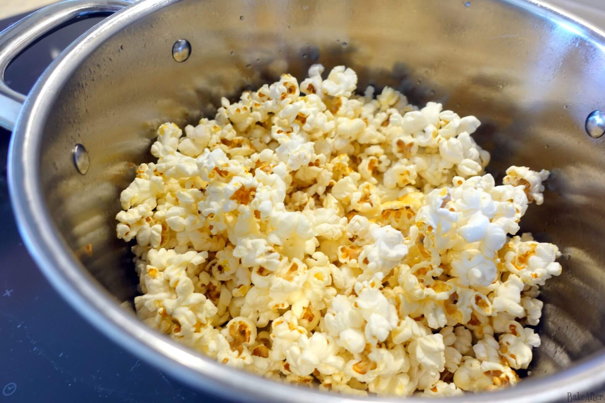 - When the popping sounds become less constant, like you only hear popping every 2 or 3 seconds, then most of the popcorn has popped, turn off the heat.