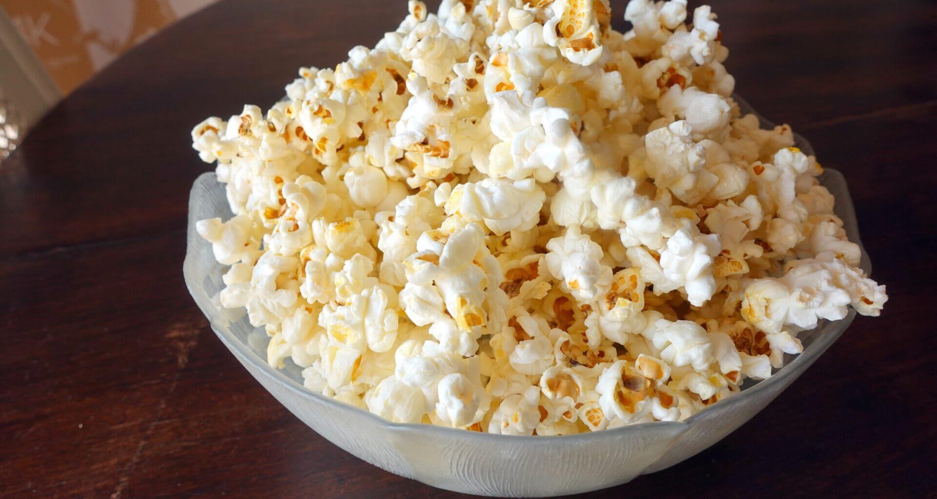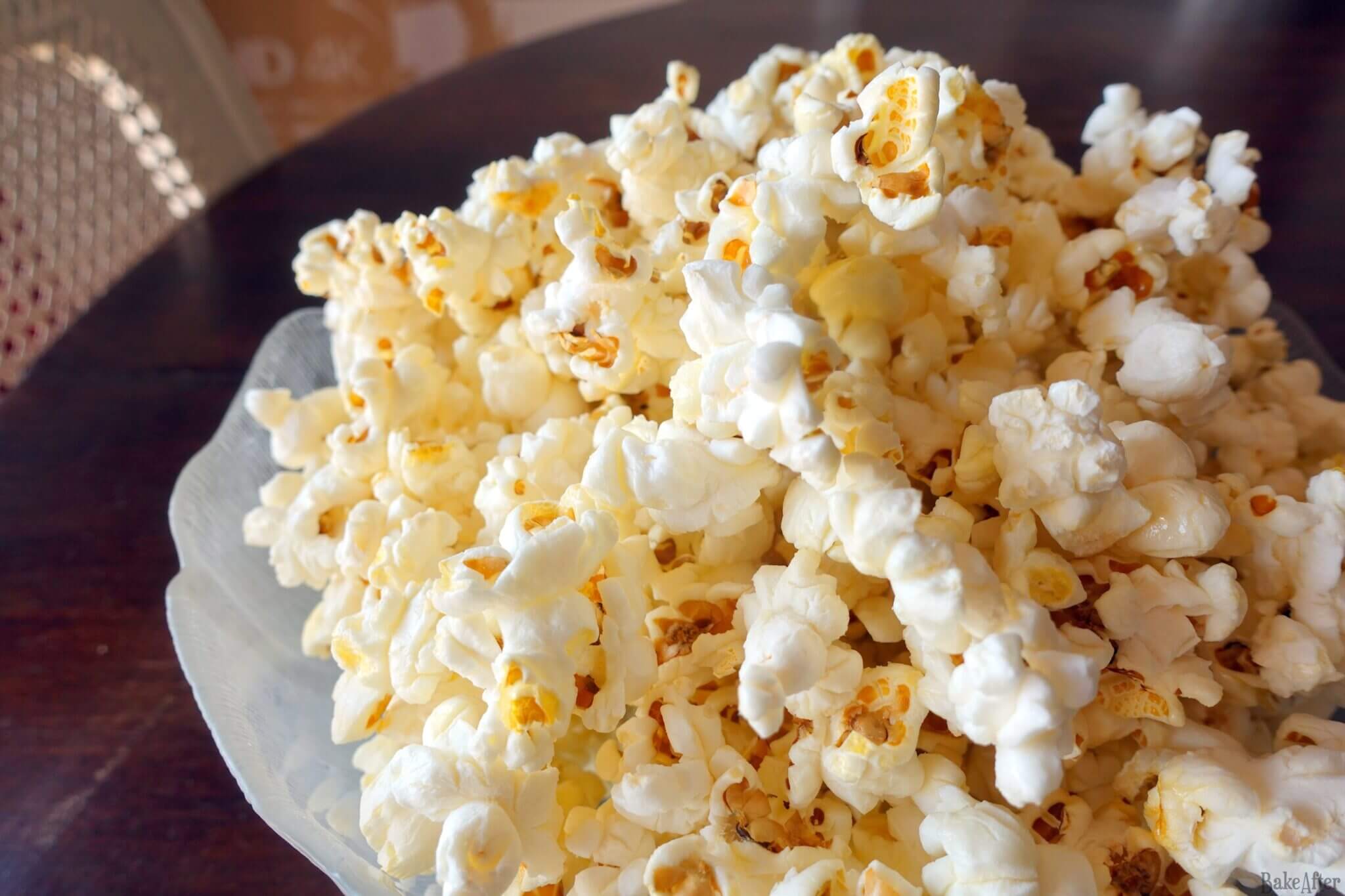 - Pour the popcorn immediately into a large tray or a wide bowl, don’t leave it in the pan, separate it with a fork while it’s still warm so that it stays loose and the popcorn separate, and that’s it, let it cool down a little and it will be perfect! Bon appétit!