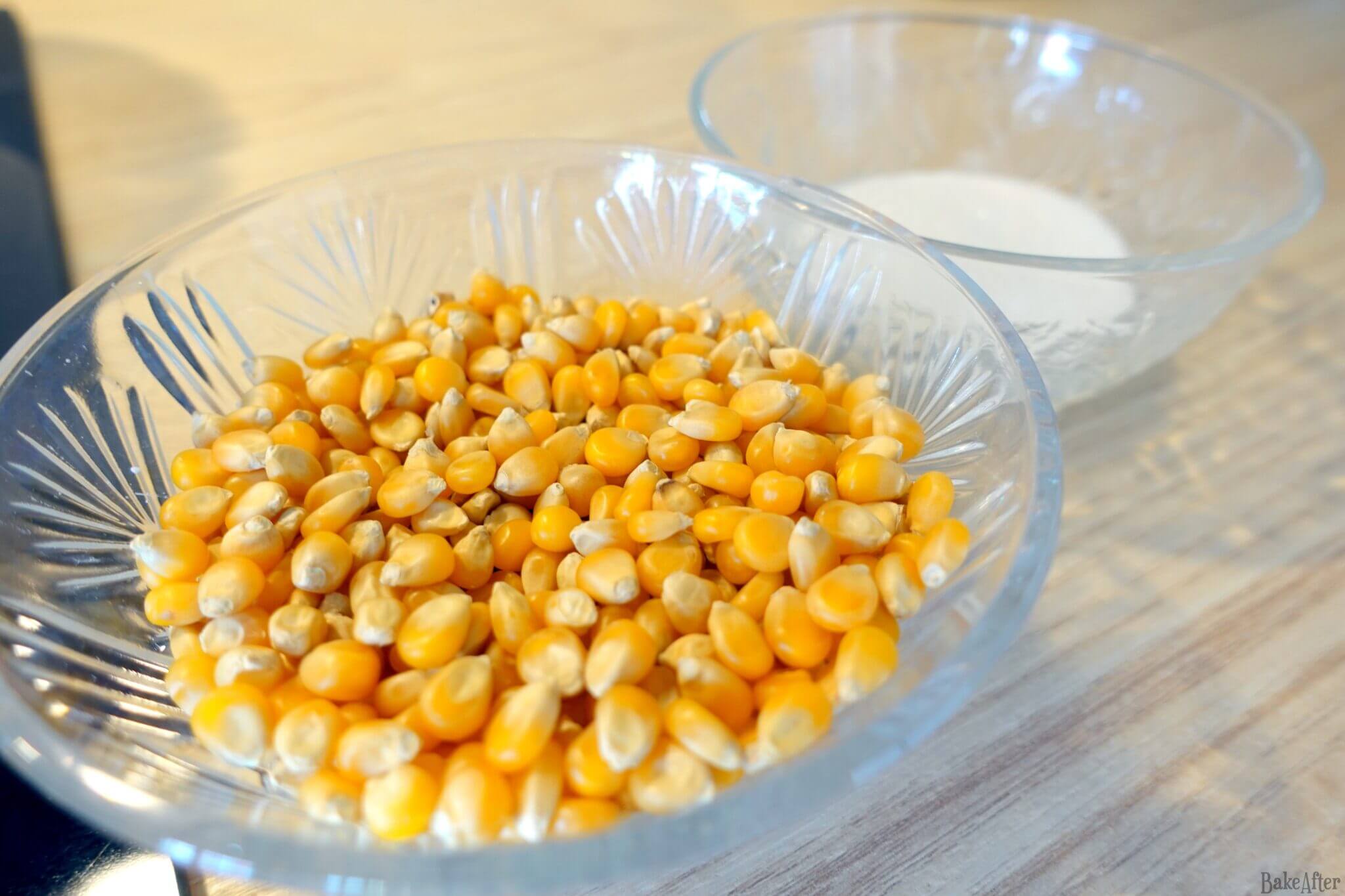 - In a large pot (at least 5 liters) with a lid, add the oil and 1 corn kernel, and place over medium heat.