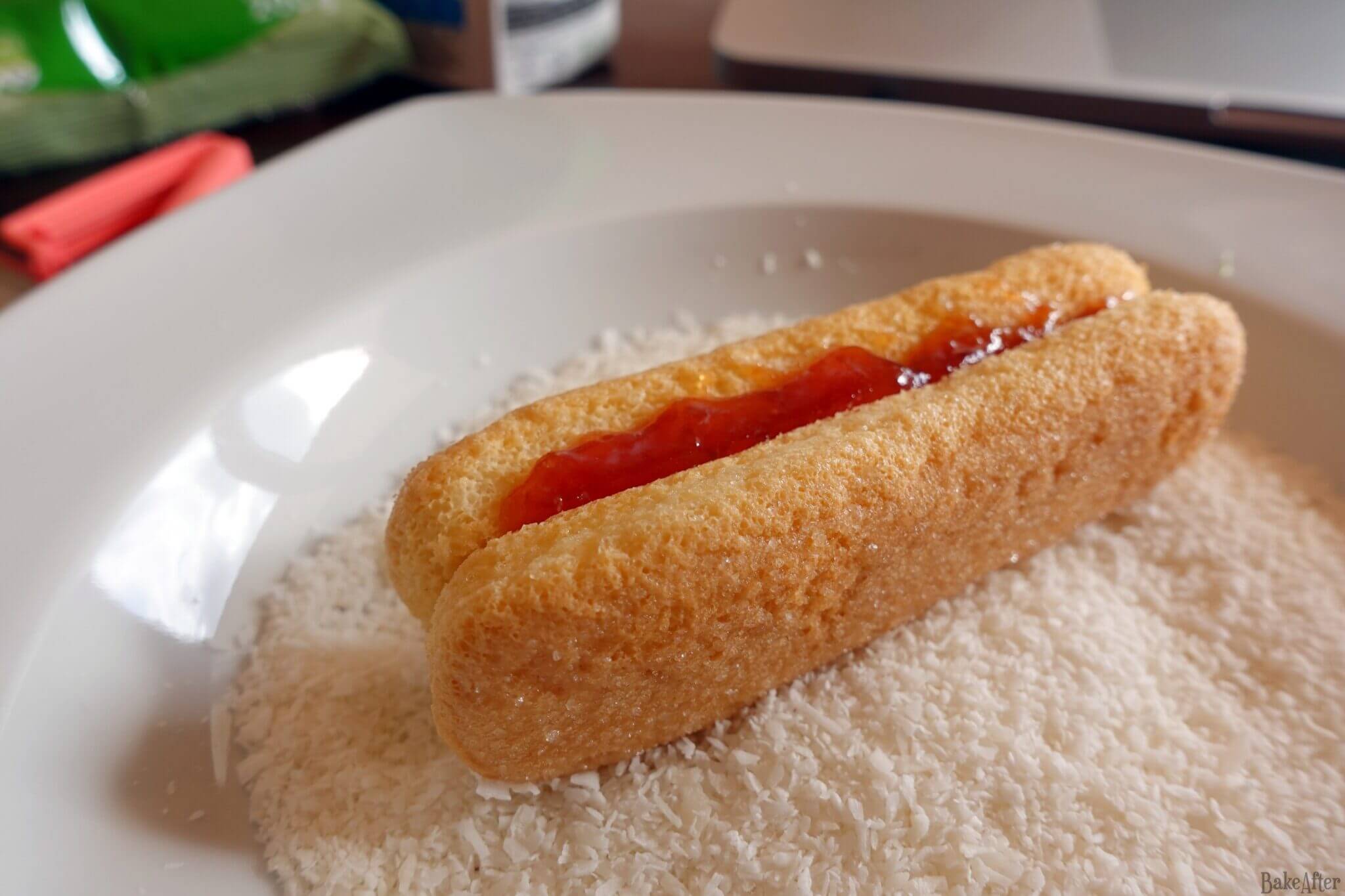 This recipe for No-Bake Italian Ladyfinger Cookie Sandwiches with Tomato Jam and Coconut was originally created on BakeAfter.com.