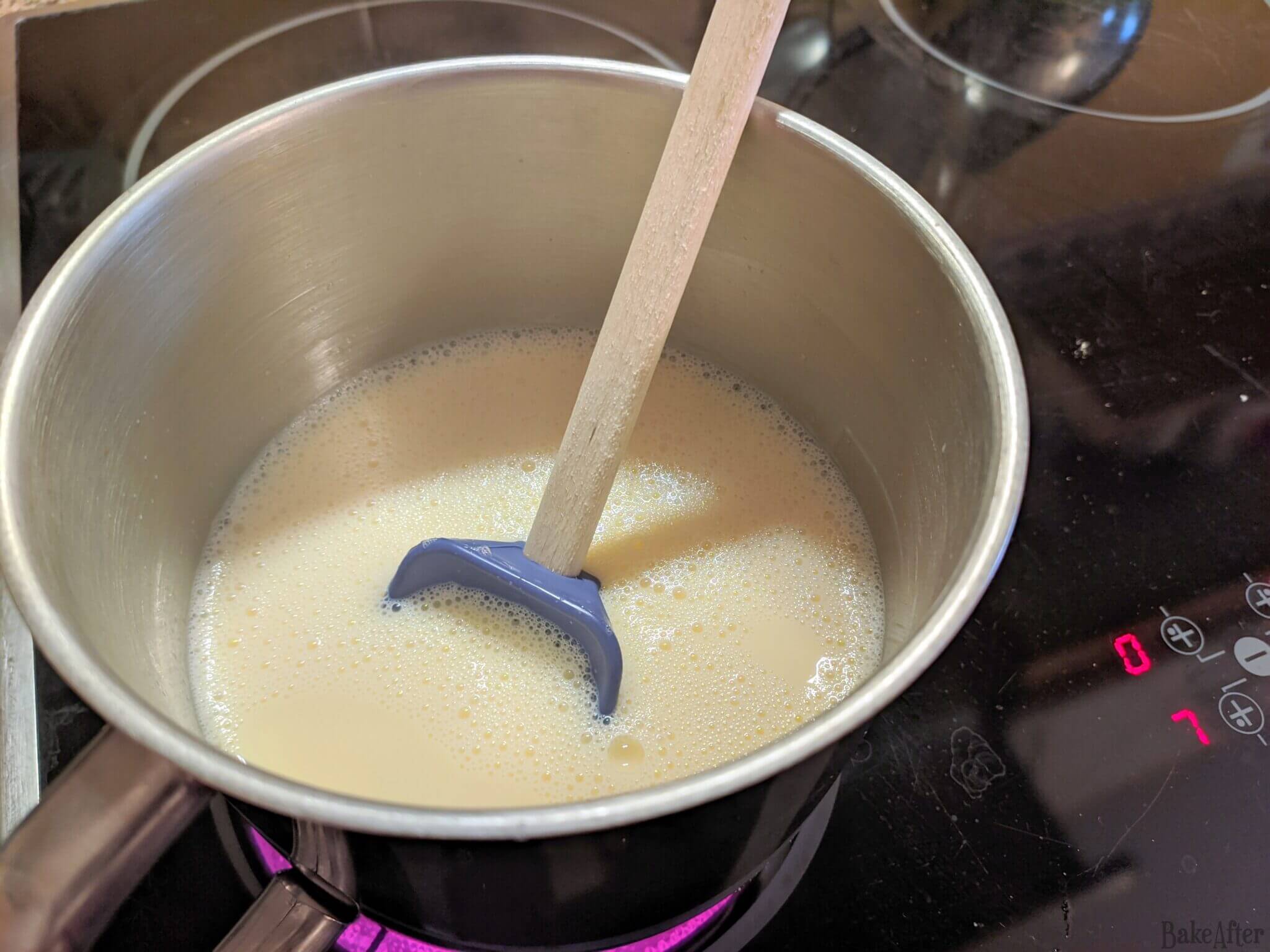 5. Whisk the egg yolks until creamy, then gradually add the milk and flour mixture to the egg yolks, stirring constantly. You do this to gradually increase the temperature of the egg yolks without curdling them.