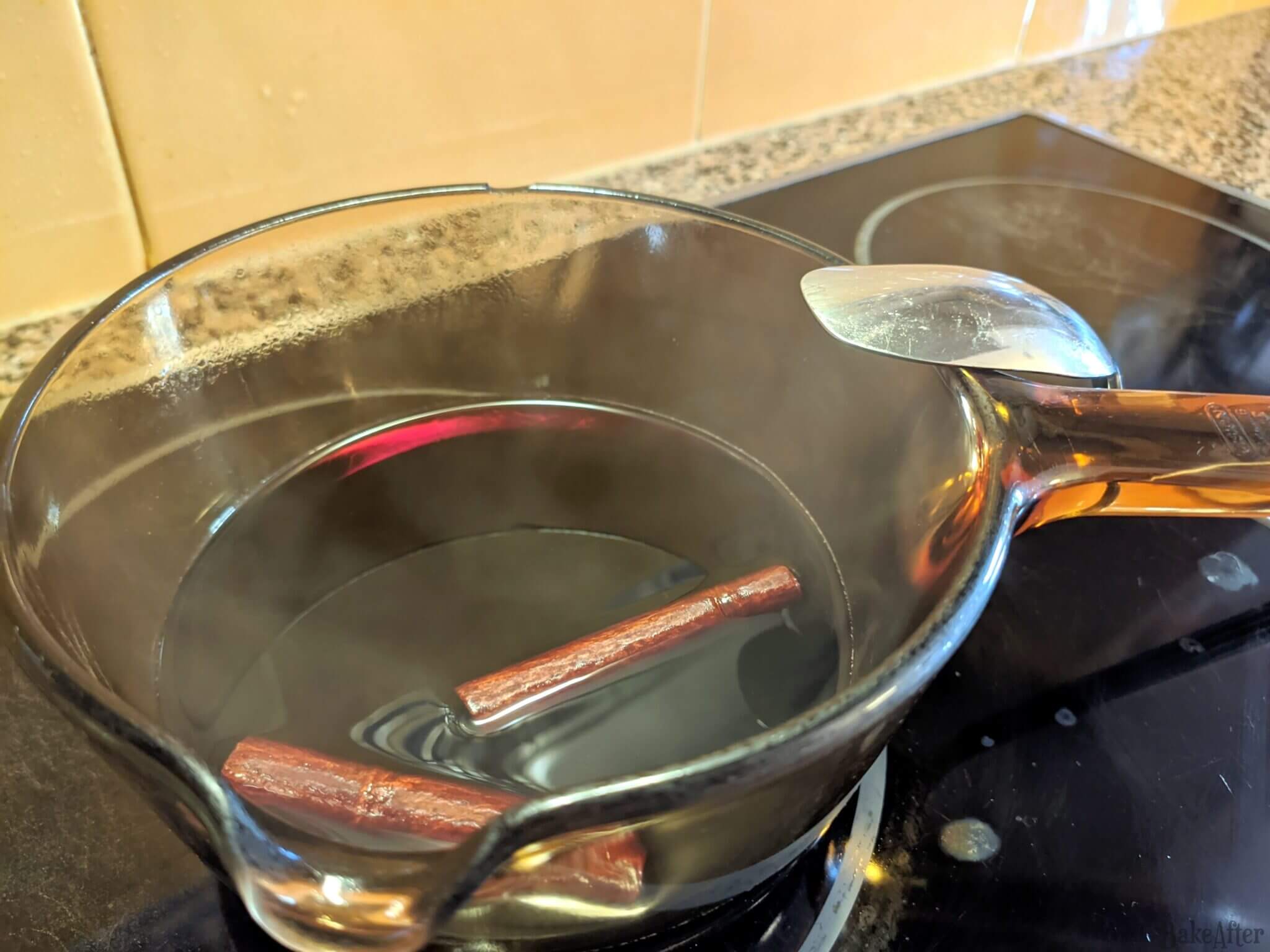 The syrup should be thin and pourable when hot, it will thicken as it cools. Don’t reduce it too much or it’ll become sticky and hard to work with. Think maple syrup consistency.