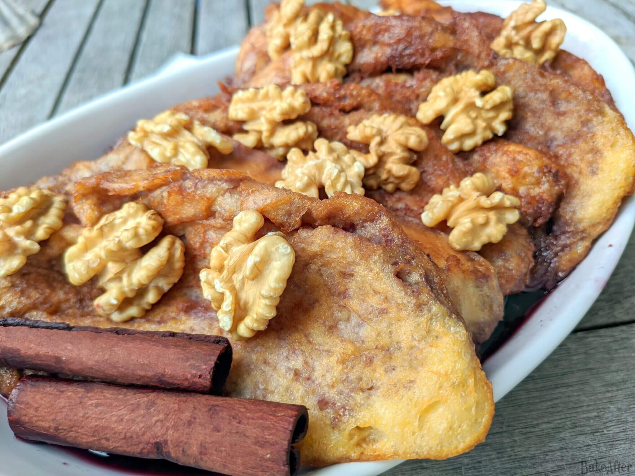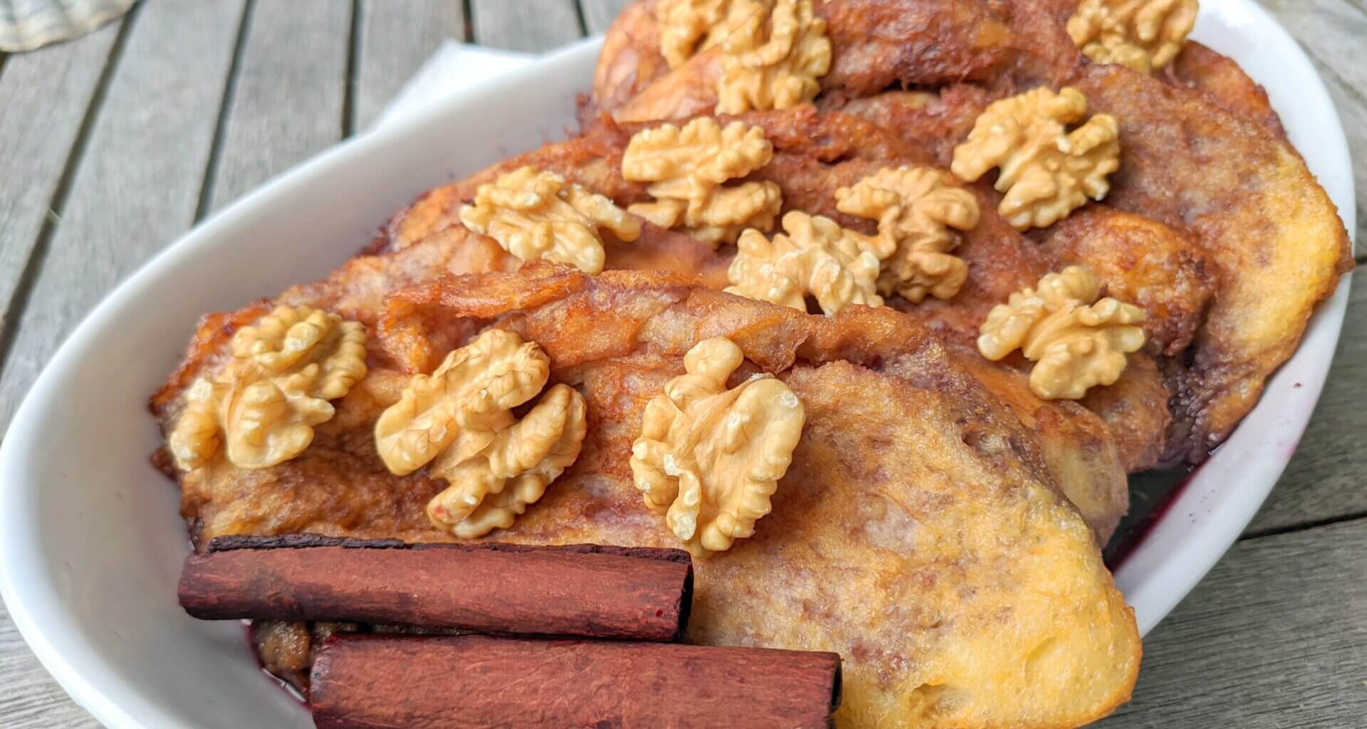 - Finally serve the Portuguese Rabanadas French toast with some walnuts on top, bon appétit and Merry Christmas.