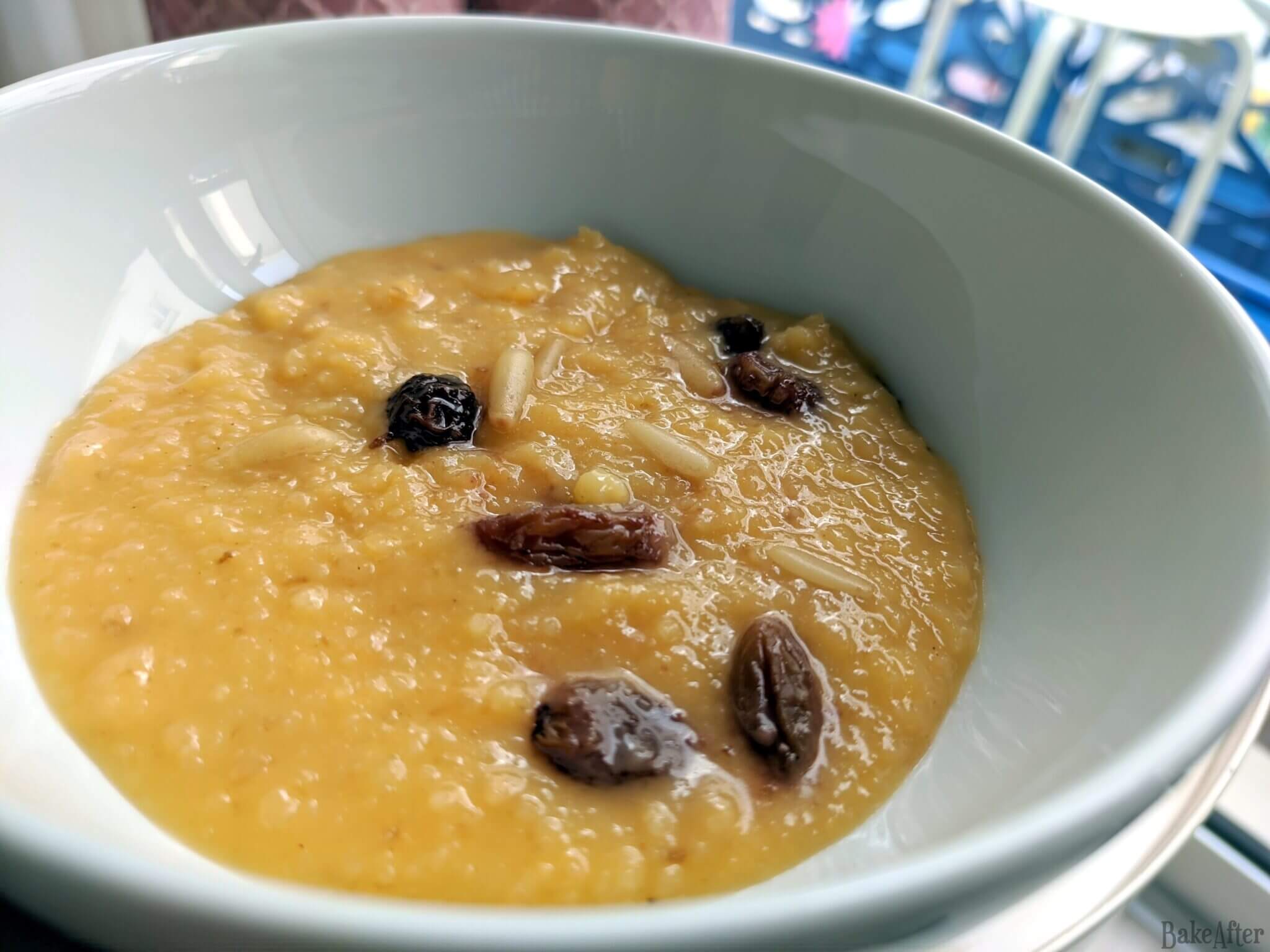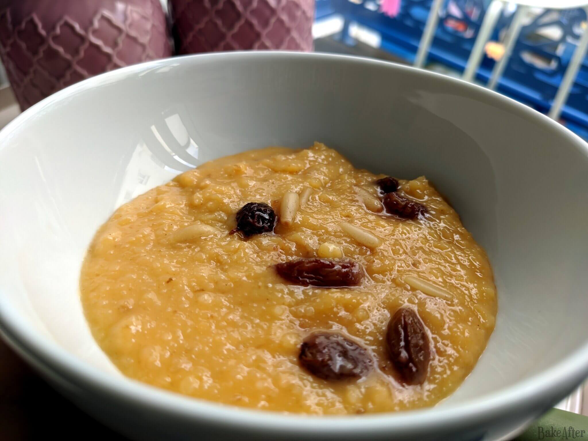 This recipe for Portuguese Christmas Sweet Almond Bread Pudding • Migas Doces Alentejanas was originally created on BakeAfter.com. Esta receita de Migas Doces de Amêndoa com Passas e Pinhões foi publicada em português no Iguaria.com.