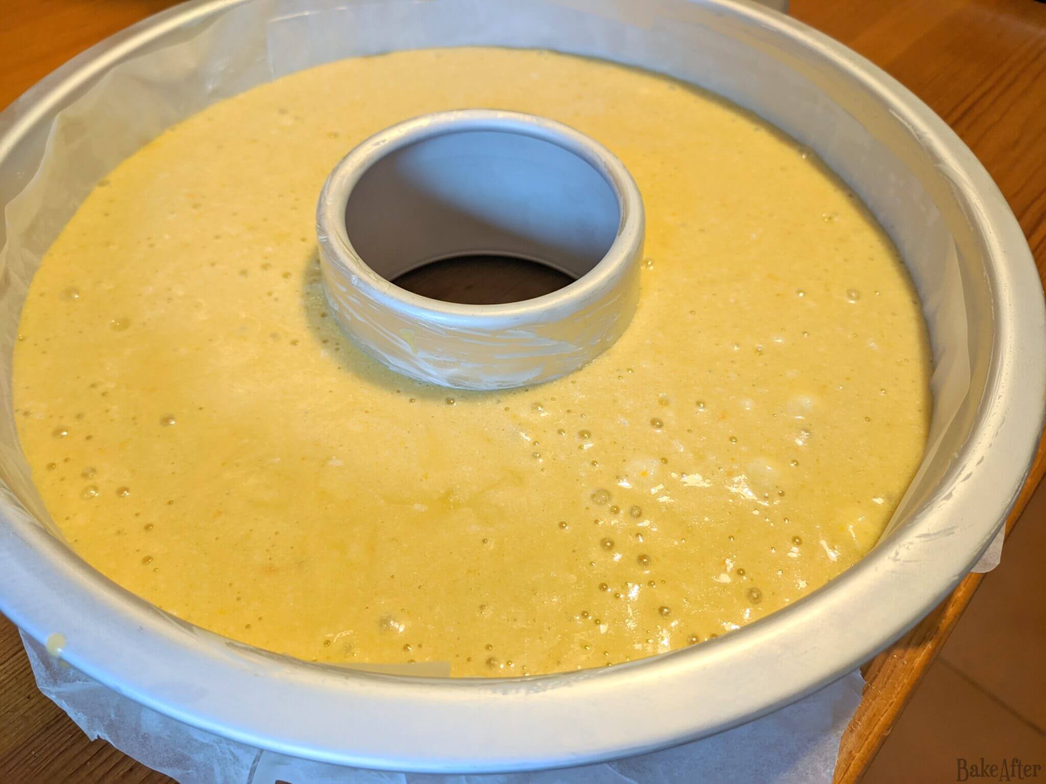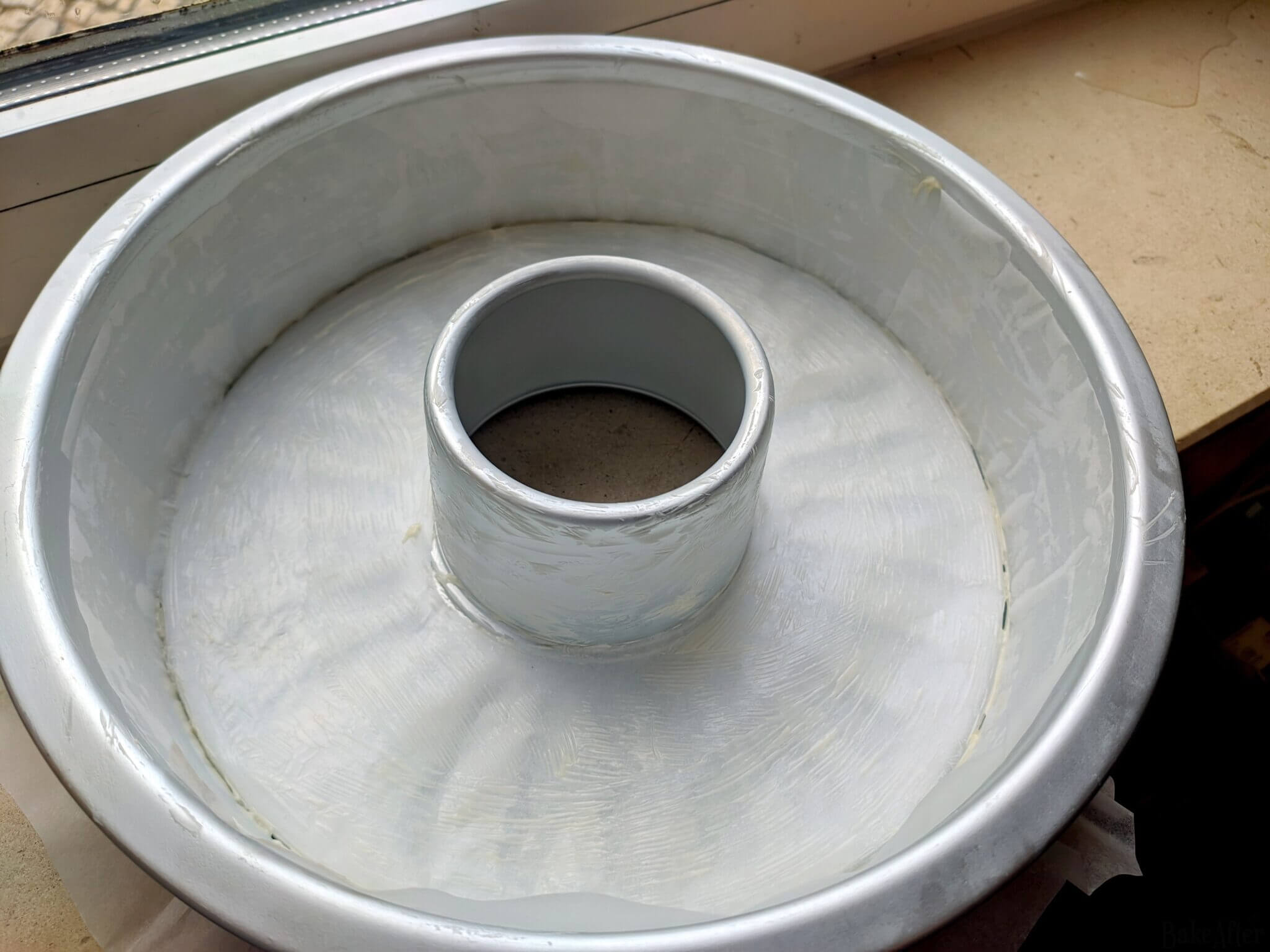 5. Preheat the oven to 180ºC (350ºF) and grease a cake tin with butter and line it with non-stick paper.
