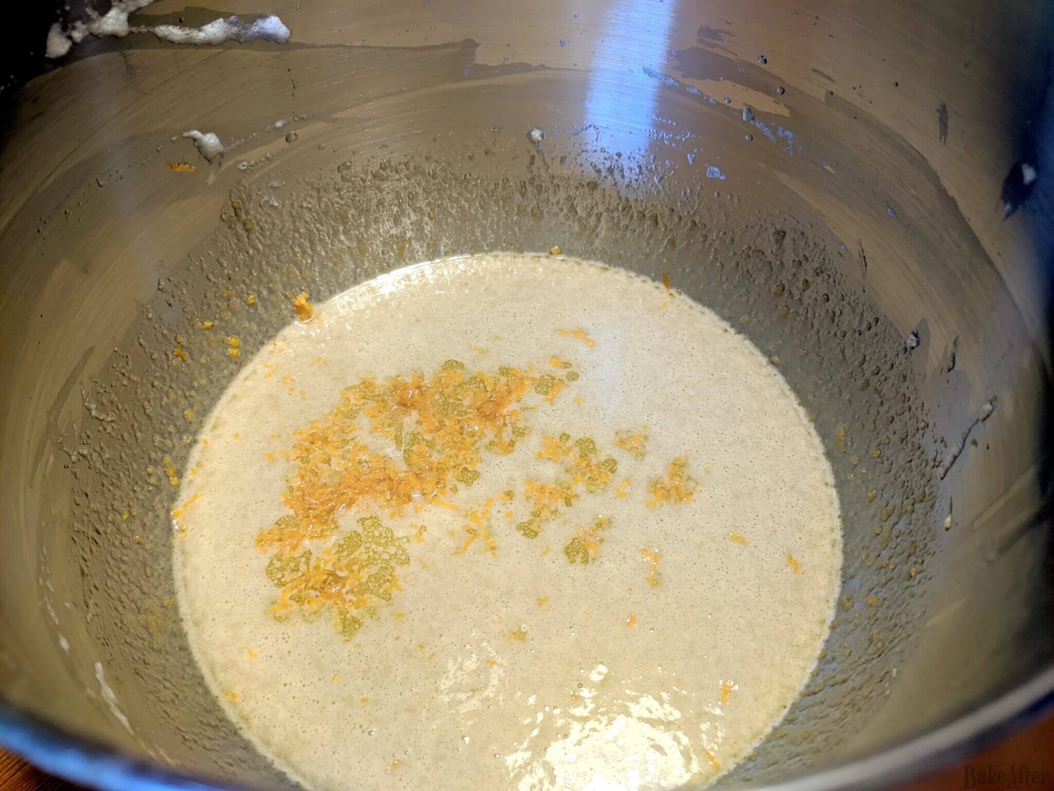 3. Add the sifted flour with the orange zest, mix well until creamy.