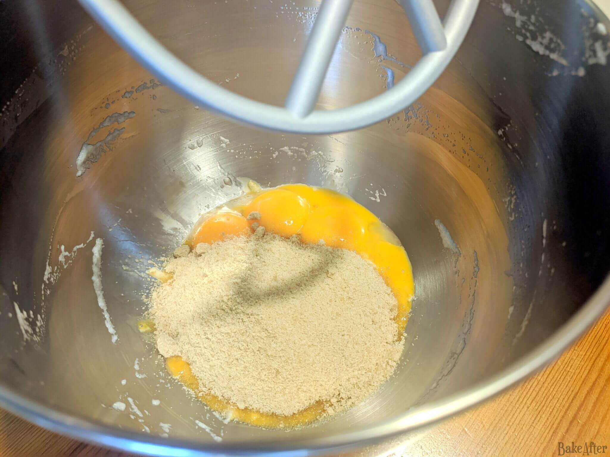 1. Start by separating the egg yolks from the whites, whisk the yolks with the brown sugar until creamy.
