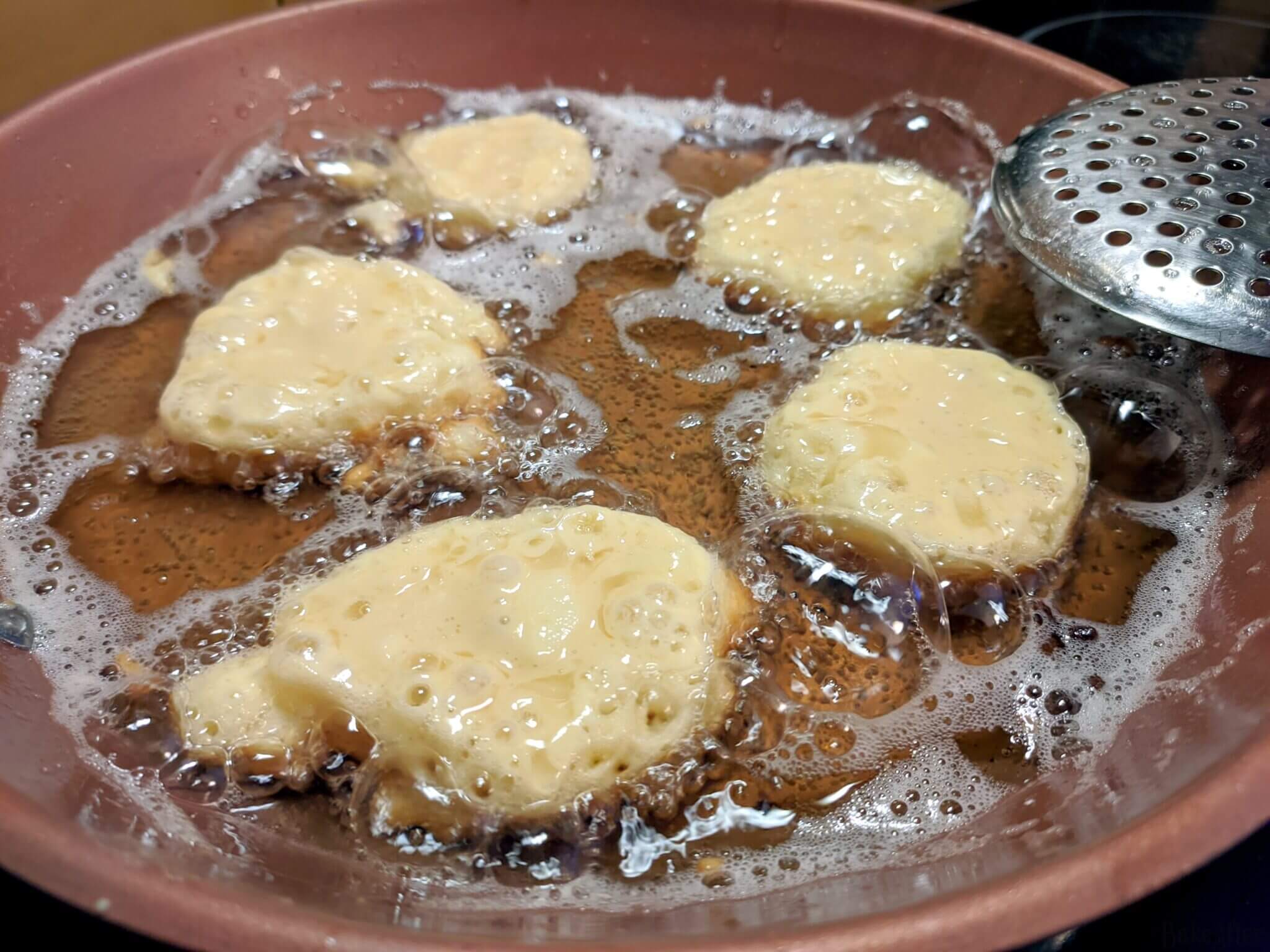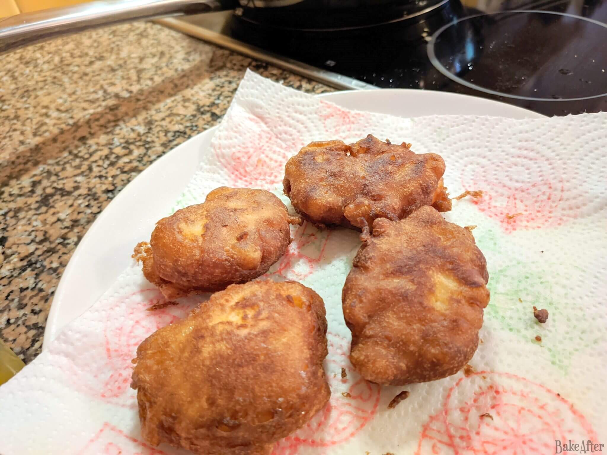 Maintaining the right oil temperature (around 180°C / 350°F) is crucial. Too hot, and they’ll brown before cooking through; too cool, and they’ll absorb too much oil and become greasy. Fry in batches to avoid crowding and temperature drops, i kinda just store the dough, since it will keep pretty well in the fridge for a couple of days and fry when there is more need.