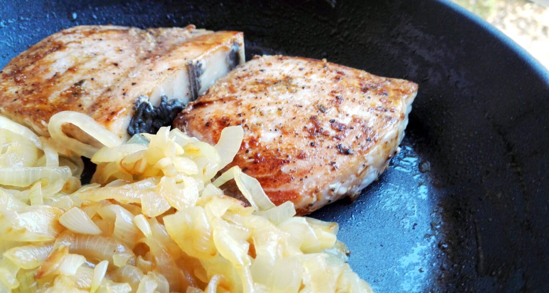 Algarve Style Pan Fried Tuna Steaks with Caramelized Onions