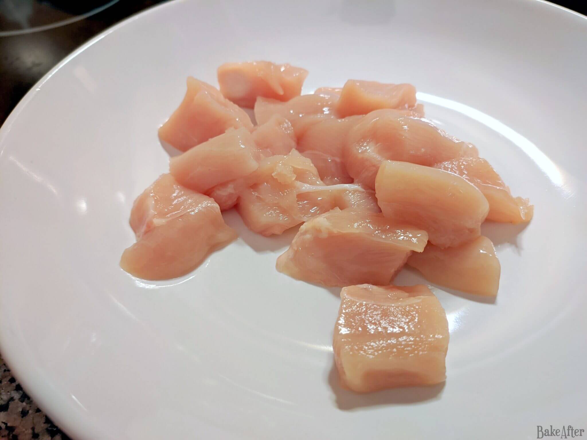 - Chicken nuggets take a little longer to make, so it’s best to start with the chicken. Cut it into strips or chuncks (against the grain, so it’s more tender), just make sure all of them are about the same size so they will cook evenly and place it in a bowl with the juice of half a lemon, salt, and pepper. Leave it to marinate for about 15 minutes.