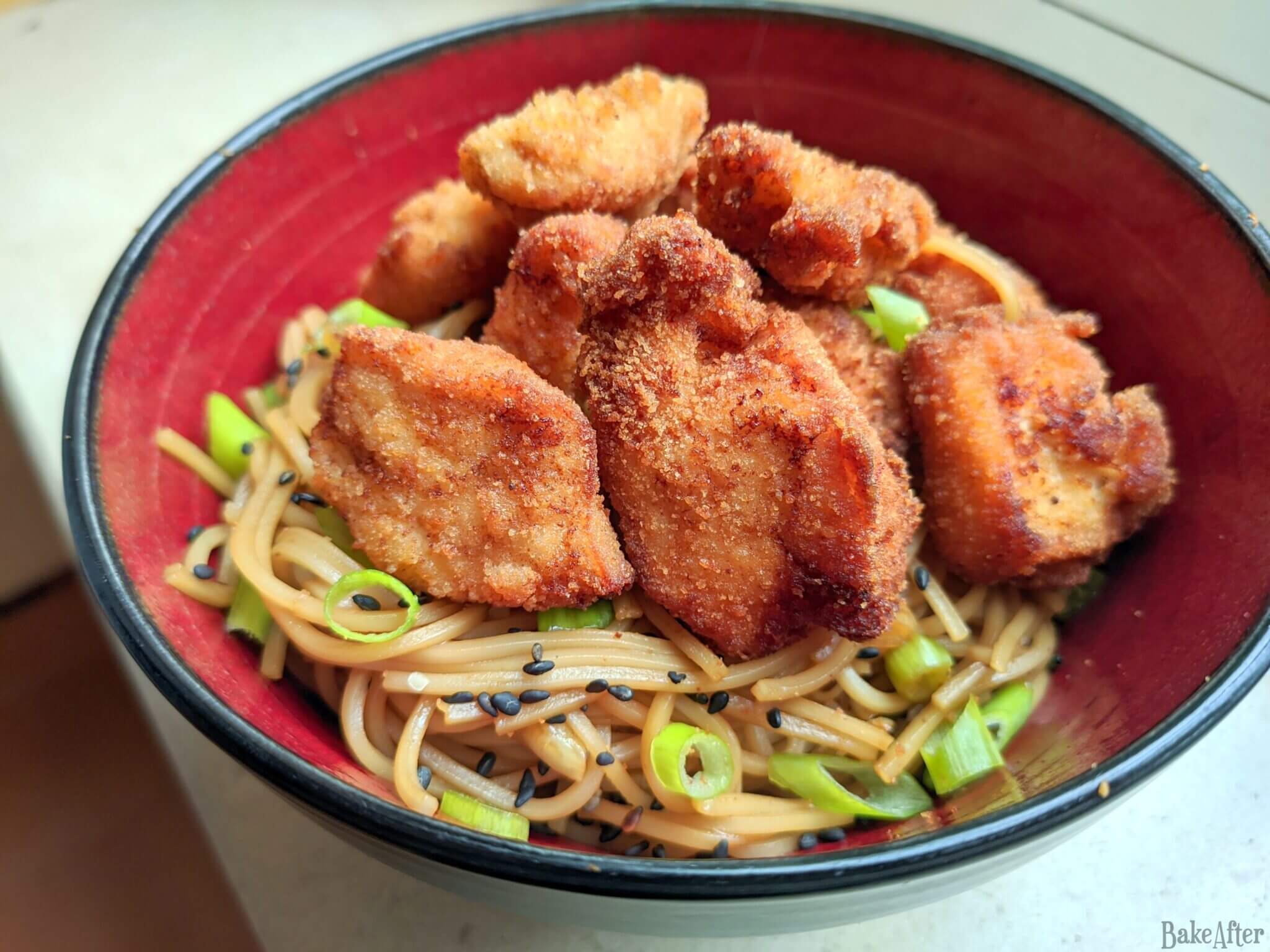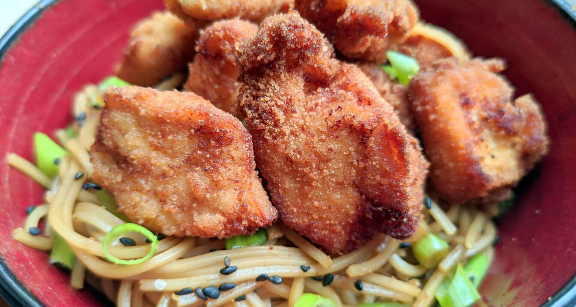 Well for today we have this delicious fusion of Eastern and Western flavors, a bit of Japanese soba noodles meeting more Western style fried chicken nuggets. The nutty buckwheat noodles get tossed with soy sauce, teriyaki, ginger, and garlic, while the chicken nuggets come out crispy and golden with a lovely hint of lemon. It’s one of those unexpected combinations that just works!