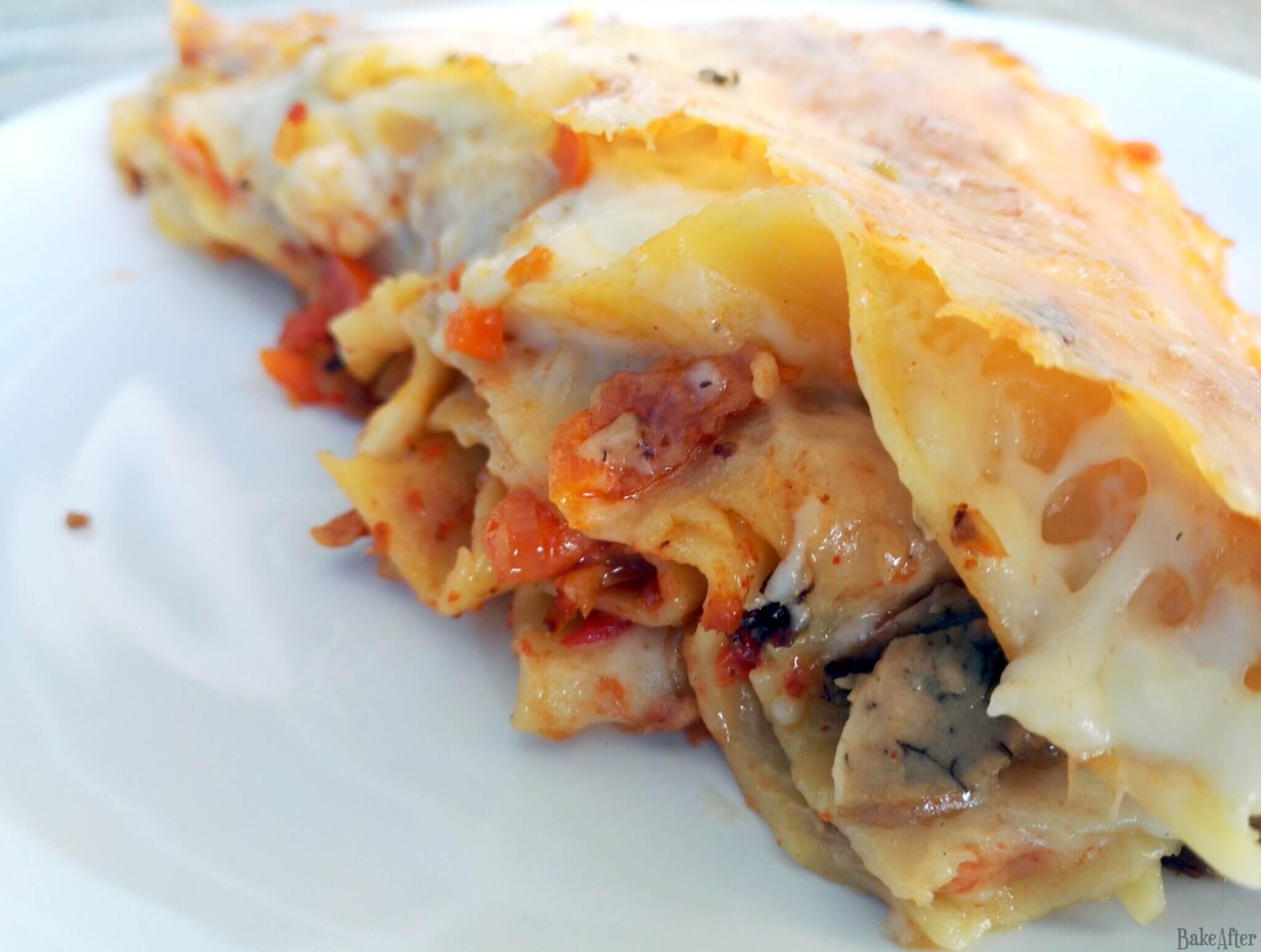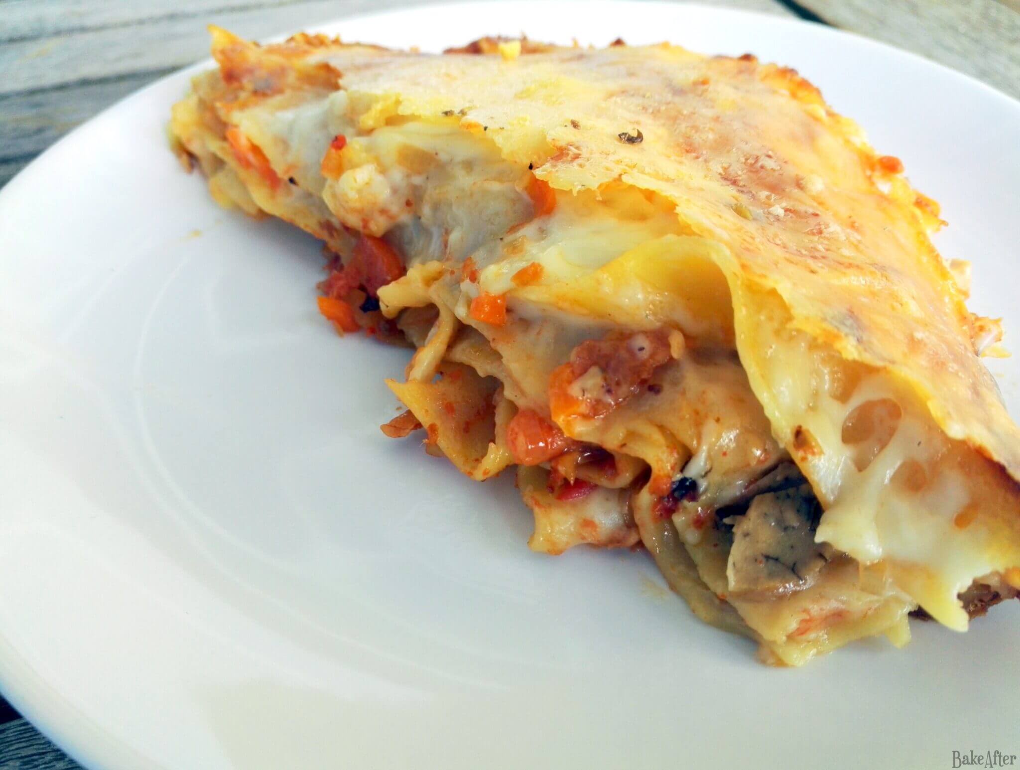 - Bake for about 40 minutes (or as recommended on the lasagna pasta box) and when its golden on top, it’s ready to serve! Enjoy!
