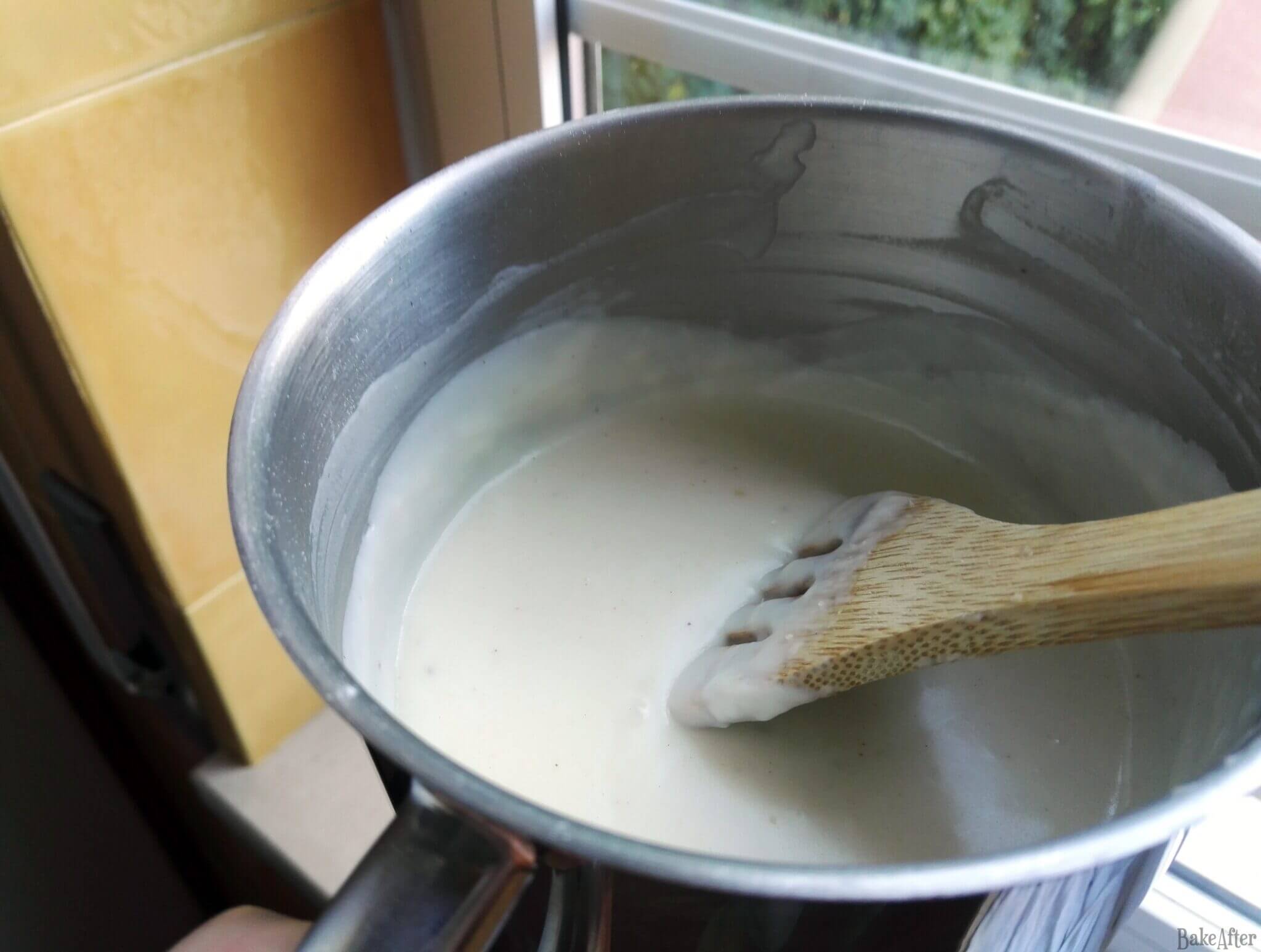 - Then season with a little salt and pepper, and add a little of the hot milk. Stir well, then add more milk and stir again until there is no more milk and you obtain a very smooth cream. Taste and adjust the salt.