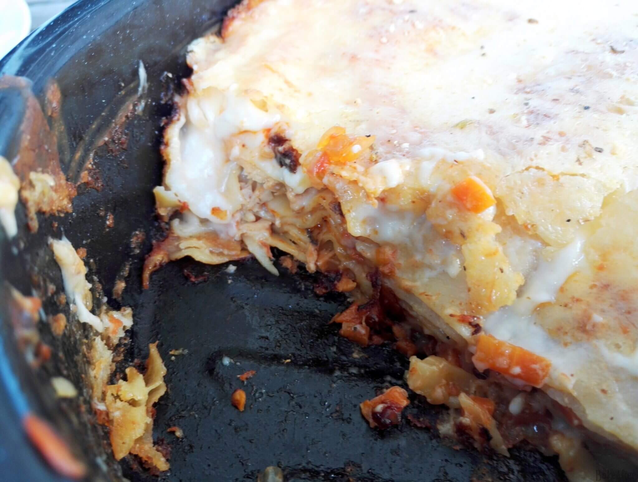 I love a good lasagna, and one day I was all set to make one when the thought hit me, why not try a different filling for once? I went back and forth between chicken and a few other options, but I ended up going with tuna, and honestly, it turned out really awesome. Flavor-wise, it’s surprisingly close to a traditional lasagna since tuna paired with tomato sauce ends up tasting pretty similar to the classic ground meat version (it’s true the cooked tomato sweetness and the cheese and bechamel kinda hide the “mystery meat”), but it still brings its own personality to the table and makes for a really interesting variation.