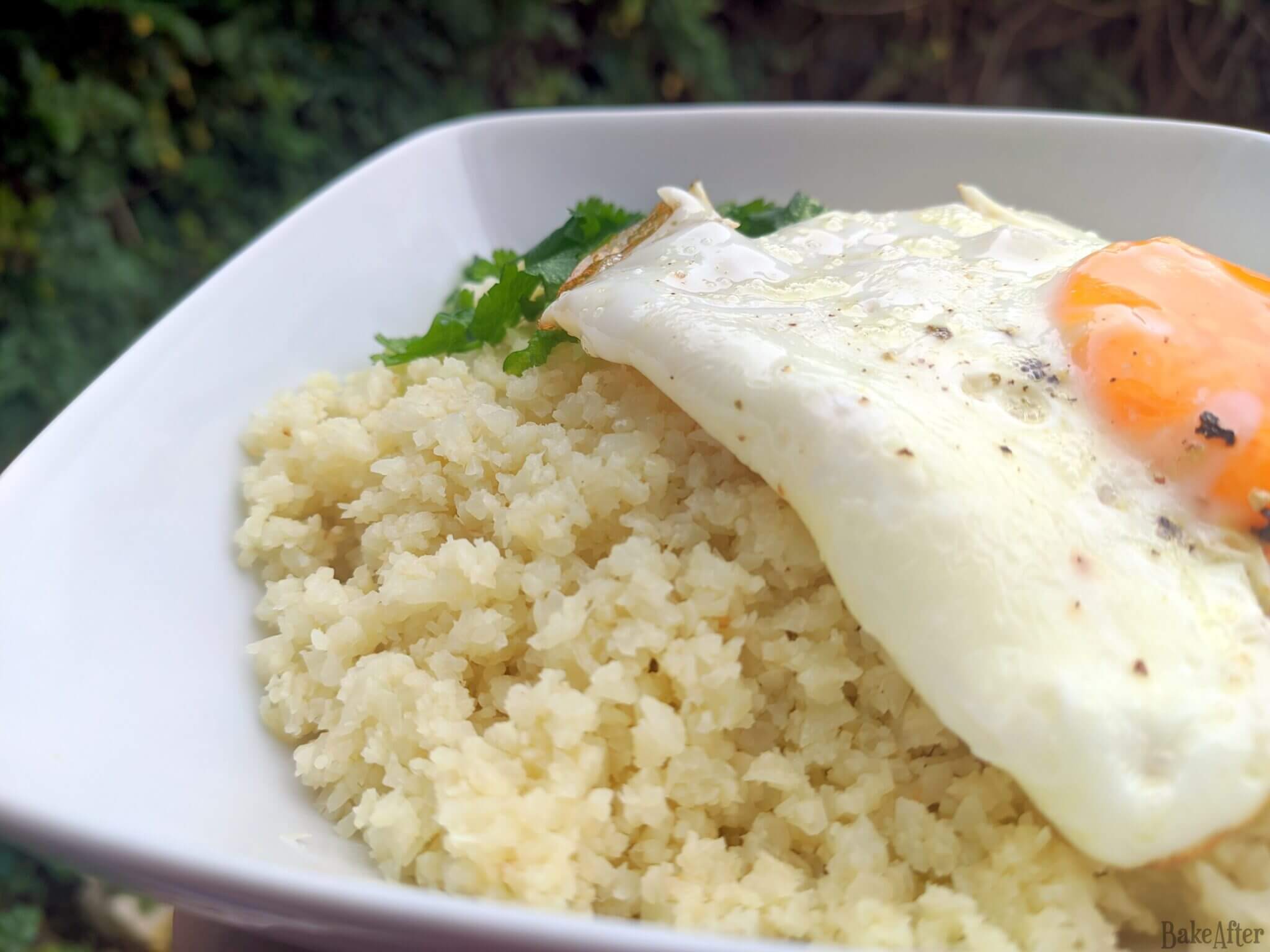 The texture is fantastic, really similar to couscous/rice and the flavor is mild and way less intense than boiled cauliflower. I originally made this to go with steak and eggs, but after tasting it, I ditched the steak.