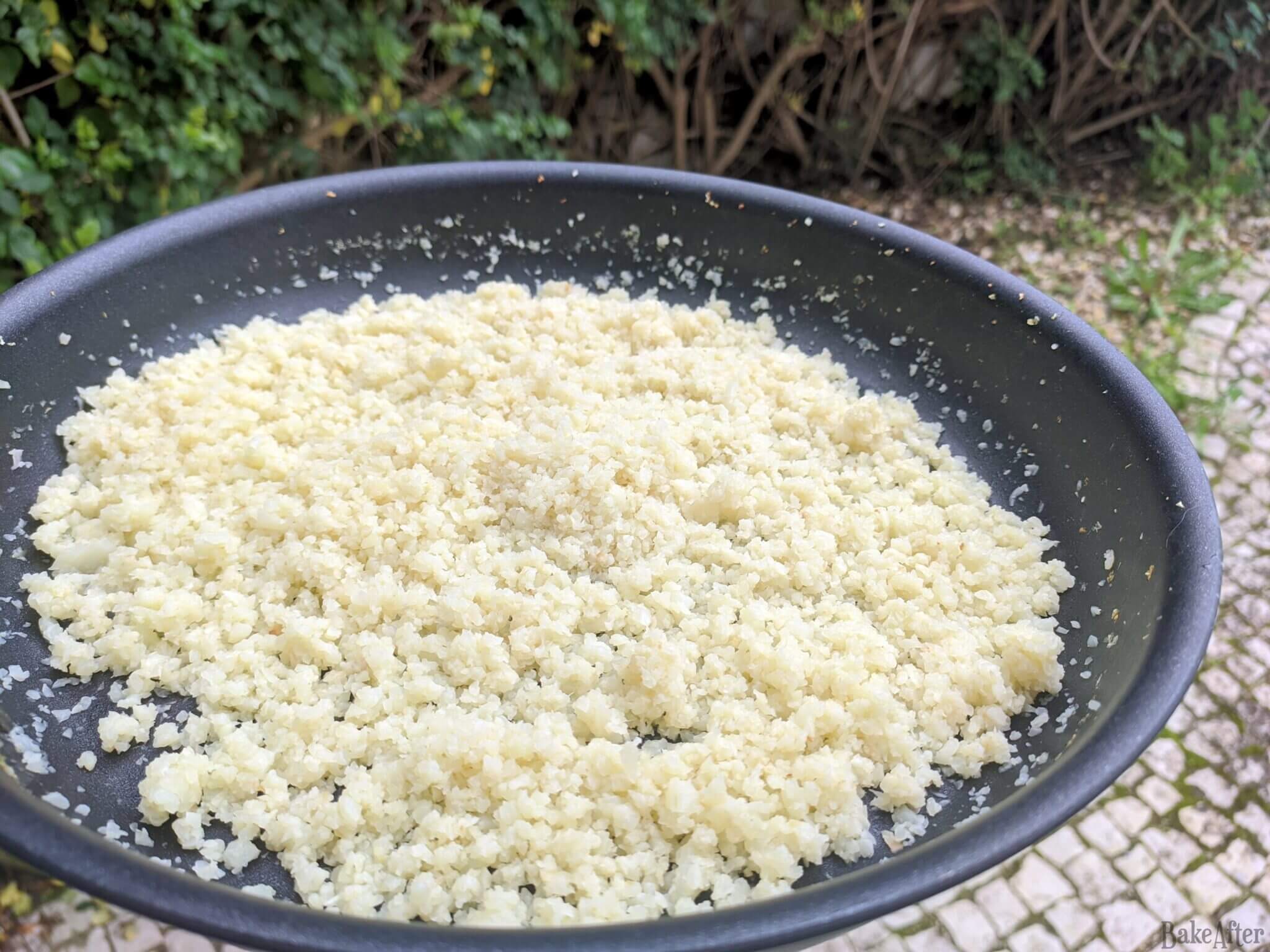 This recipe for Low Carb Cauliflower Rice with Fried Egg was originally created on BakeAfter.com. Esta receita de Couscous de Couve-Flor foi publicada em português no Iguaria.com.