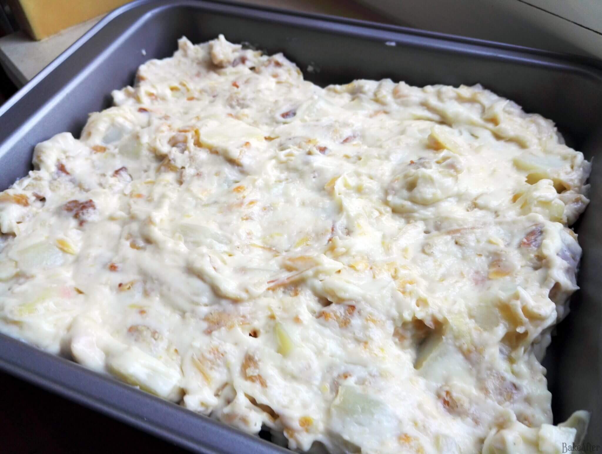 This recipe for Portuguese Codfish Gratin with Cream and Cheese • Bacalhau com Natas was originally created on BakeAfter.com. Esta receita de Bacalhau com Natas Rijo foi publicada em português no Iguaria.com.