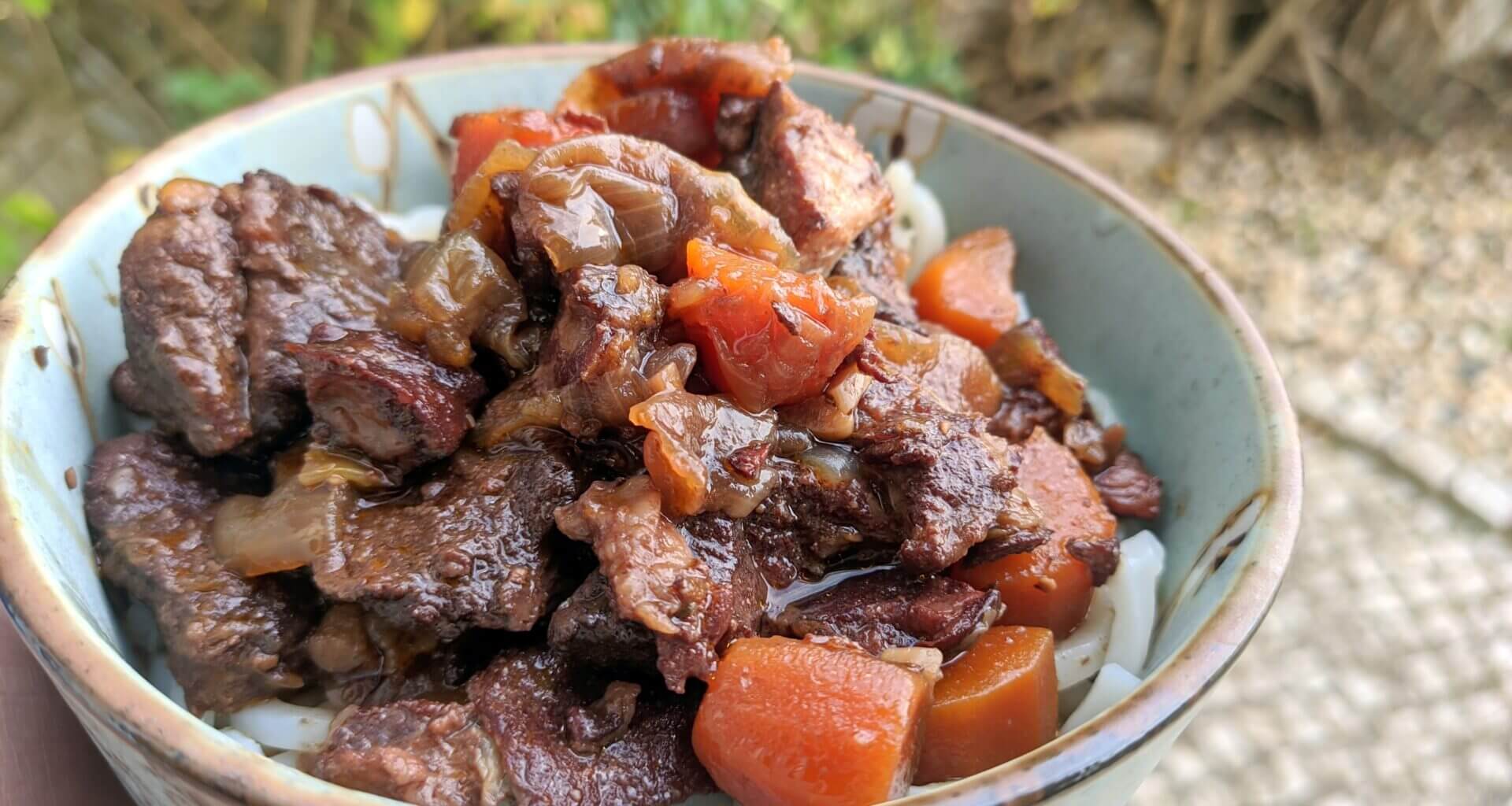 Portuguese-Style Beef Stew with Japanese Udon Noodles