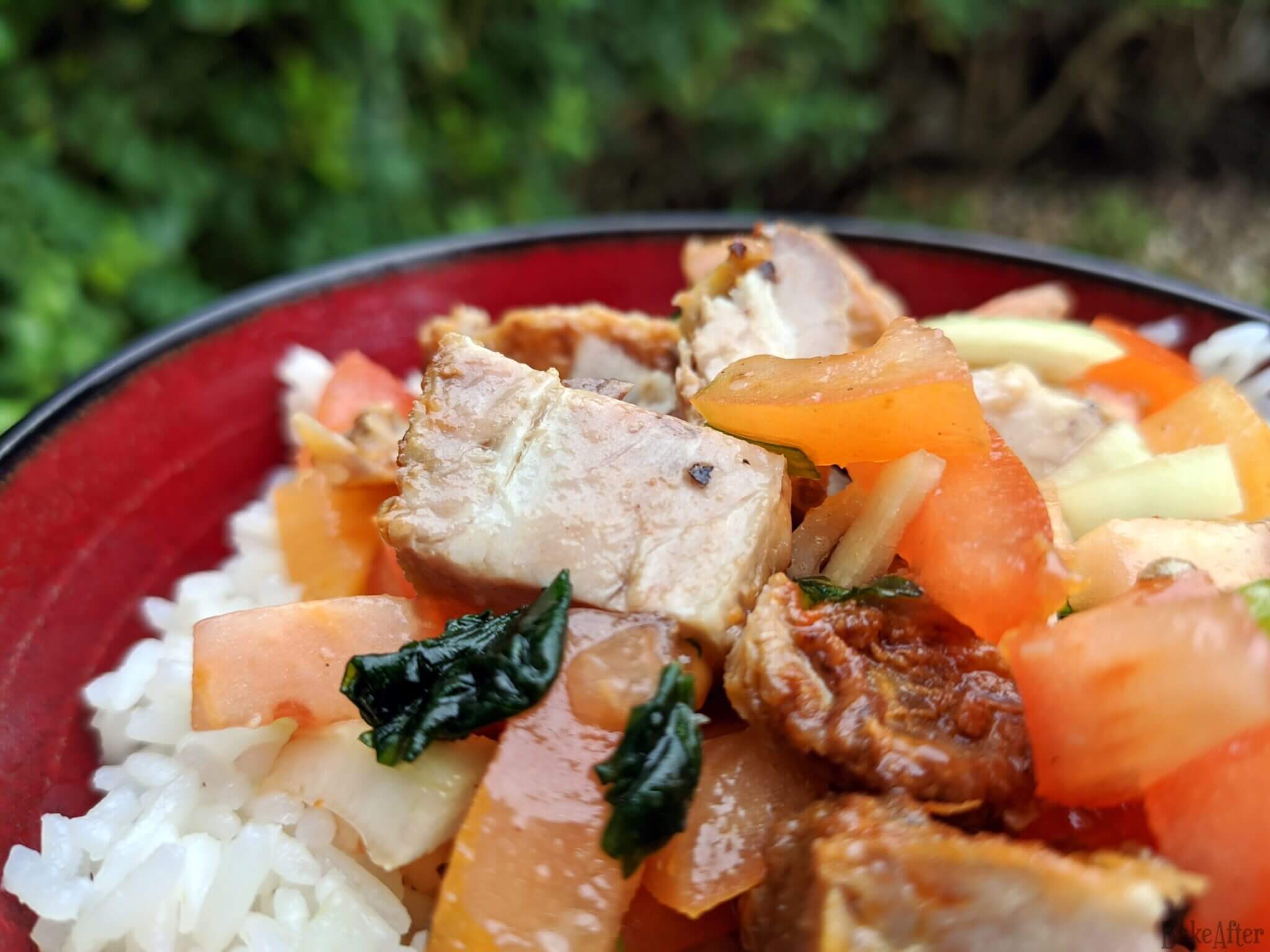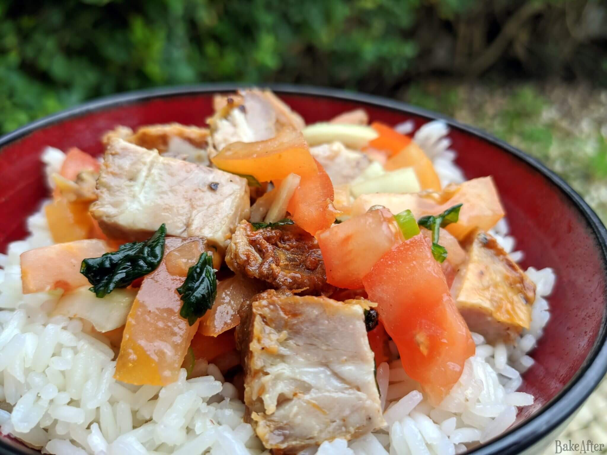 This recipe for Portuguese Style Leftover Grilled Pork Salad Bowl was originally created on BakeAfter.com. Esta receita de Salada de Entrecosto de Porco com Arroz foi publicada em português no Iguaria.com.