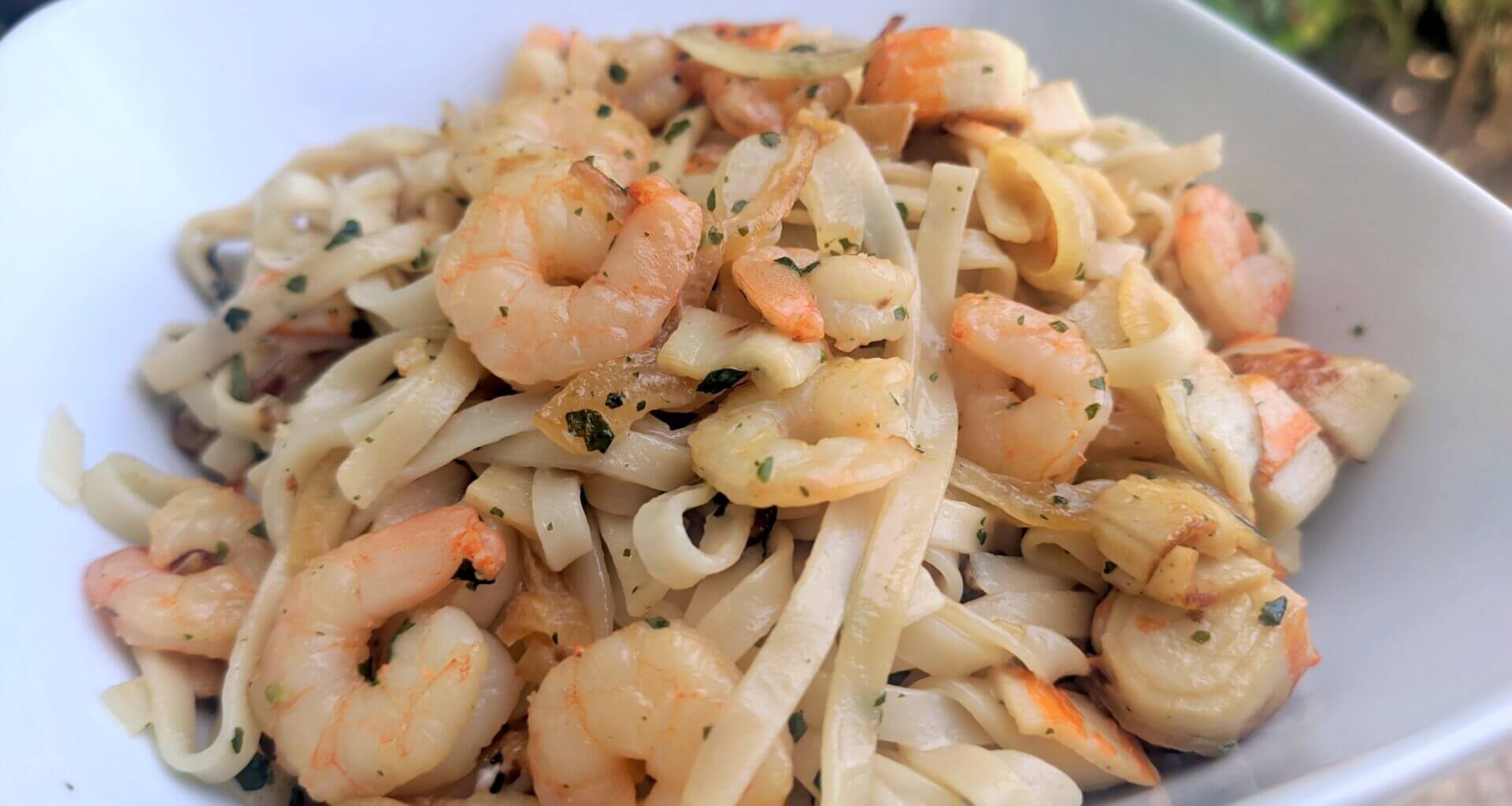 Quick Garlic Shrimp and Imitation Crab Tagliatelle Pasta