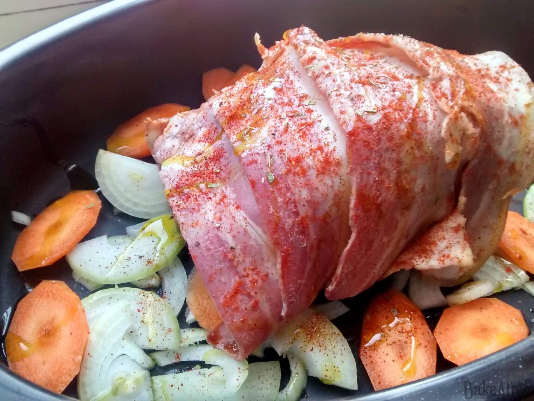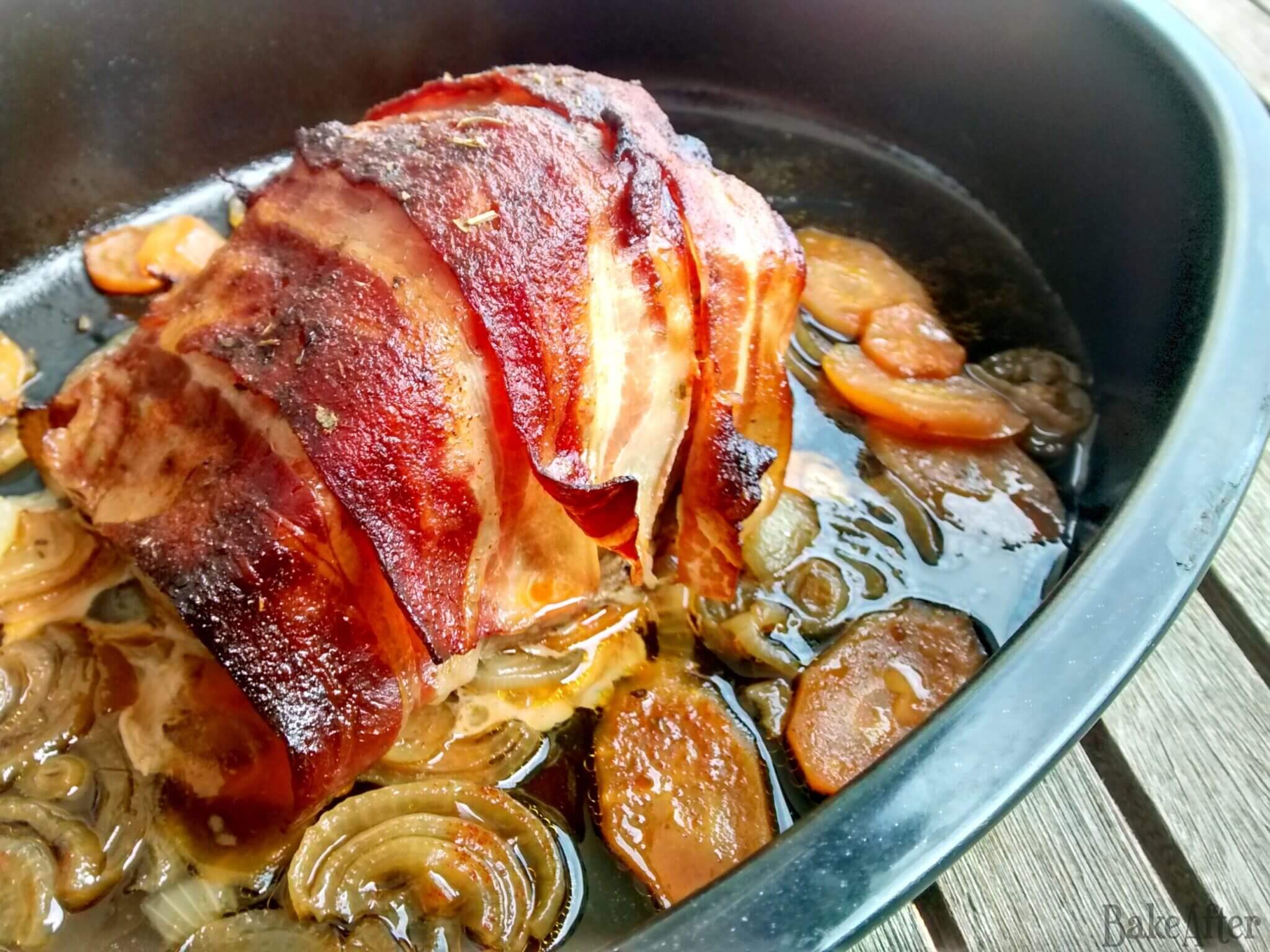 5. Cook in the oven for about 50 minutes. If the bacon starts to brown, cover with aluminum foil, remove from the oven, and let it rest for about 15 minutes before serving. Serve with some roasted potatoes 😉 Enjoy!