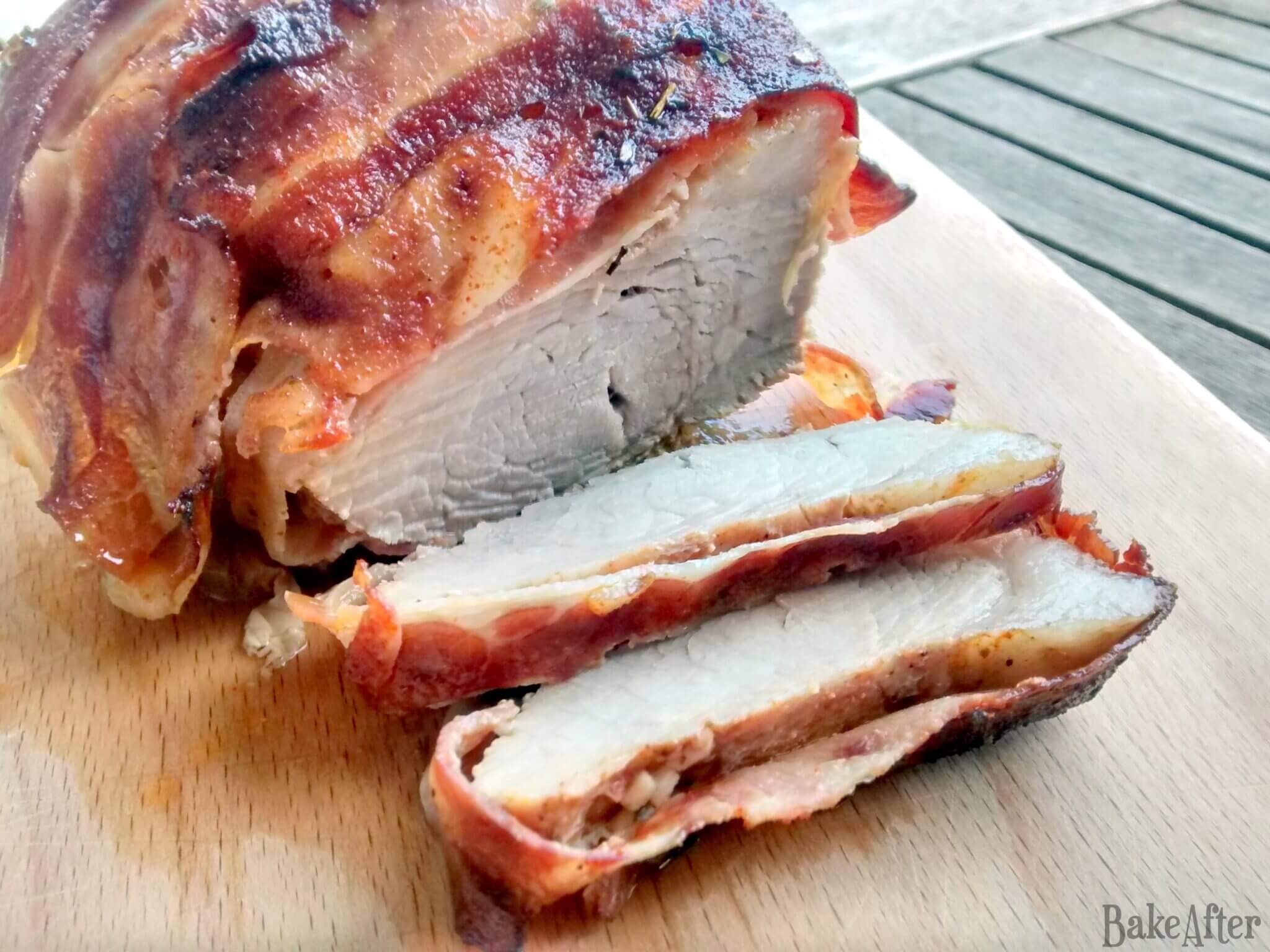 This recipe for Juicy Bacon Wrapped Pork Roast with Portuguese Spices was originally created on BakeAfter.com. Esta receita de Porco Assado com Bacon foi publicada em português no Iguaria.com.