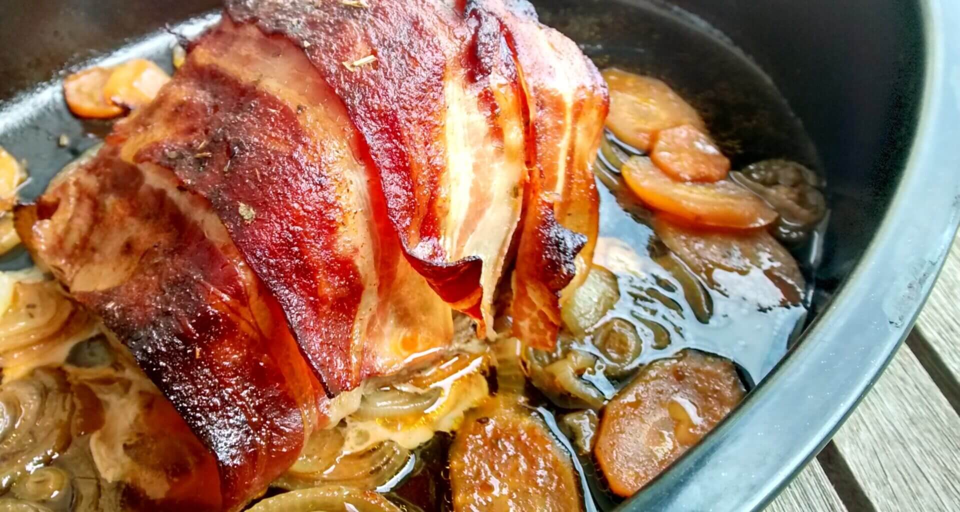 5. Cook in the oven for about 50 minutes. If the bacon starts to brown, cover with aluminum foil, remove from the oven, and let it rest for about 15 minutes before serving. Serve with some roasted potatoes 😉 Enjoy!