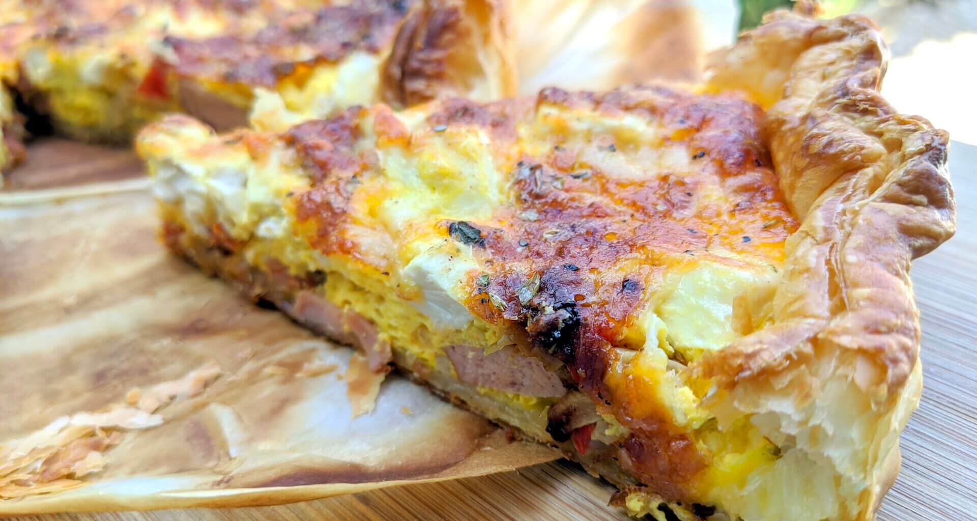 Savory & Creamy Tofu, Sausage, Ham & Red Pepper Quiche