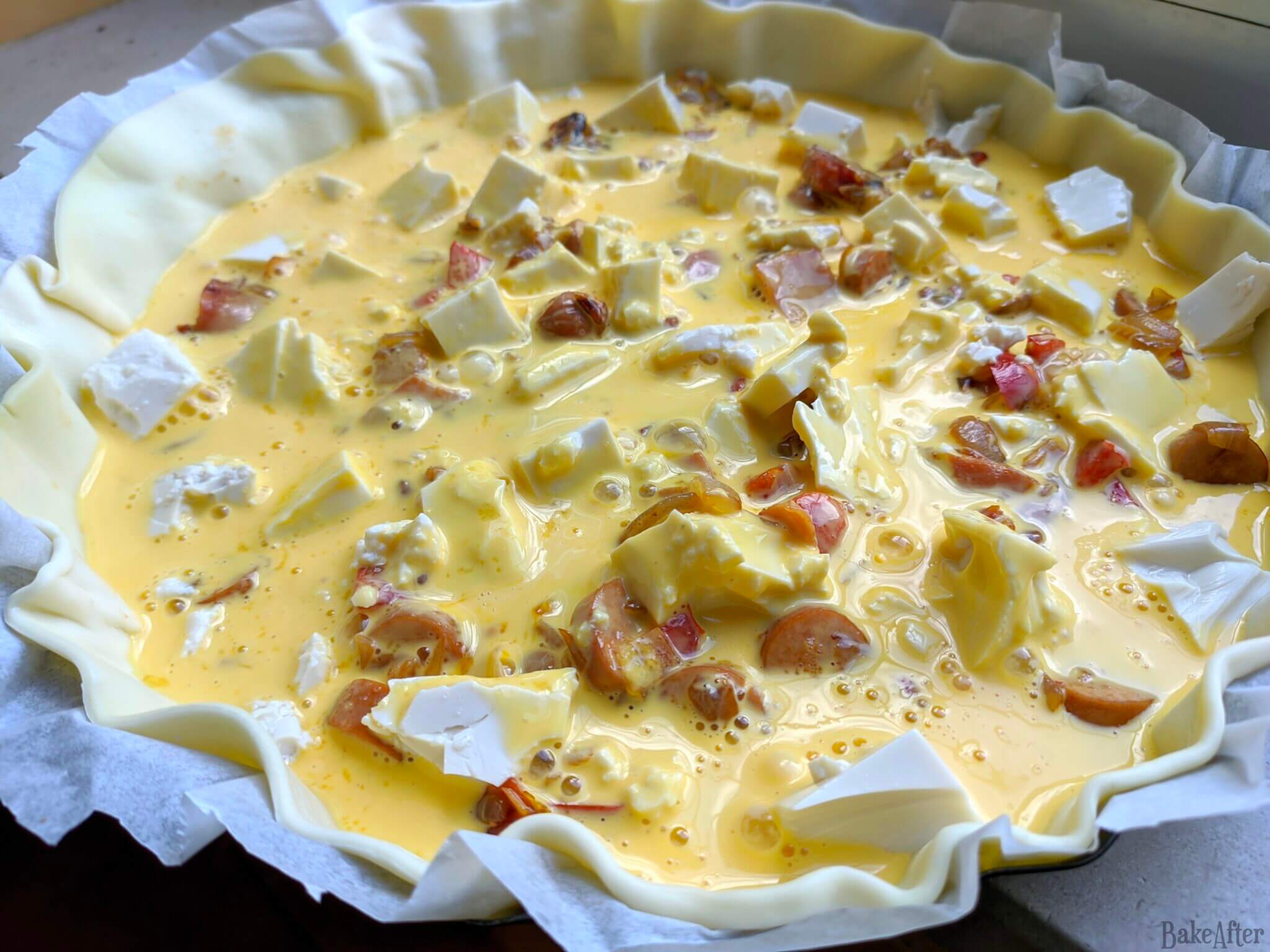 Notes: Like any quiche, you can adjust the ingredients to your taste. The only good rule is not to put too much filling by volume (otherwise the eggs don’t have space to bind everything together) and not to add too many different flavors, because the final result might end up with a strange taste ;D