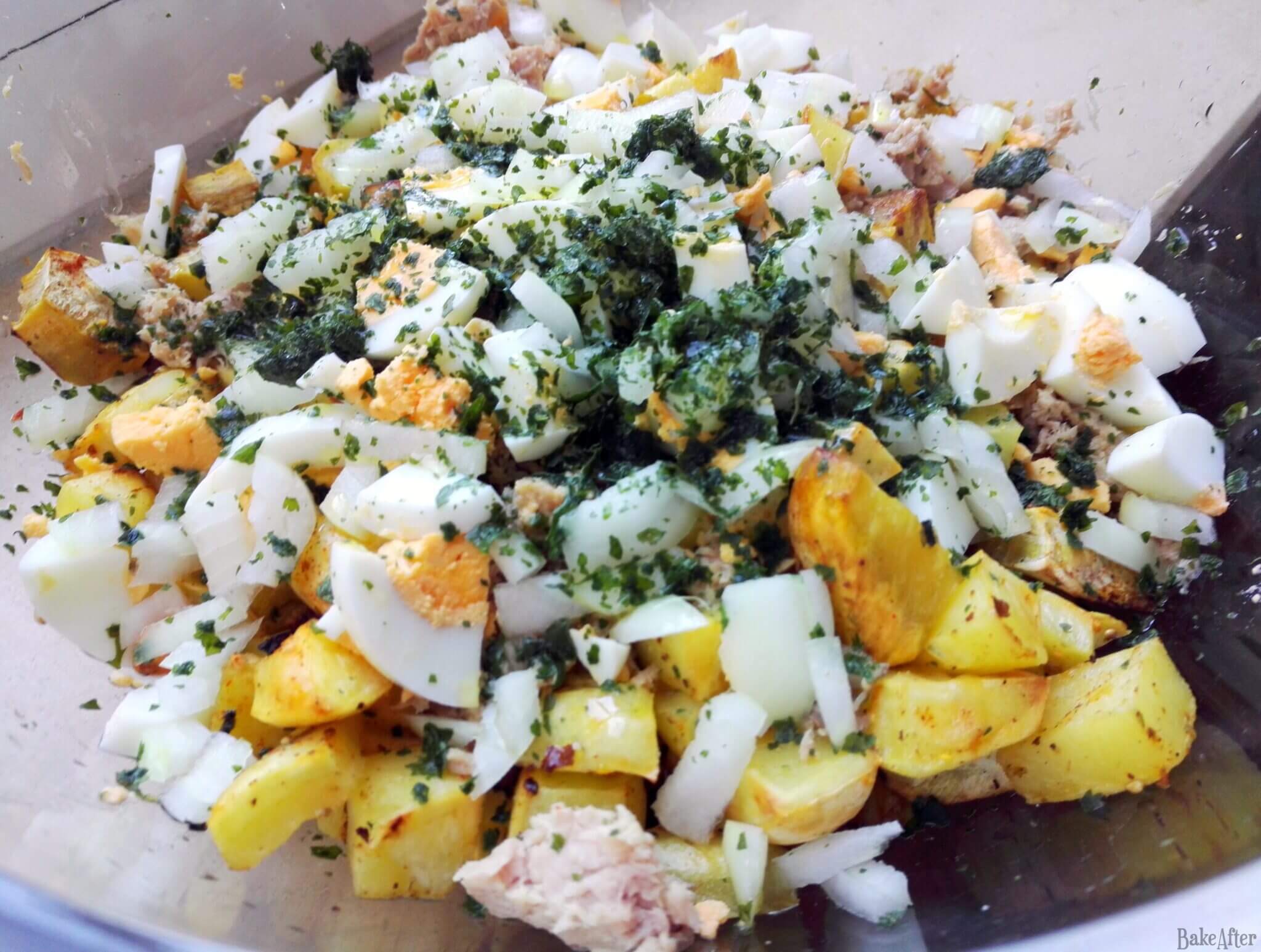 This recipe for Tuna & Egg Creamy Roasted Potato Salad was originally created on BakeAfter.com. Esta receita de Salada de Batata e Atum foi publicada em português no Iguaria.com.