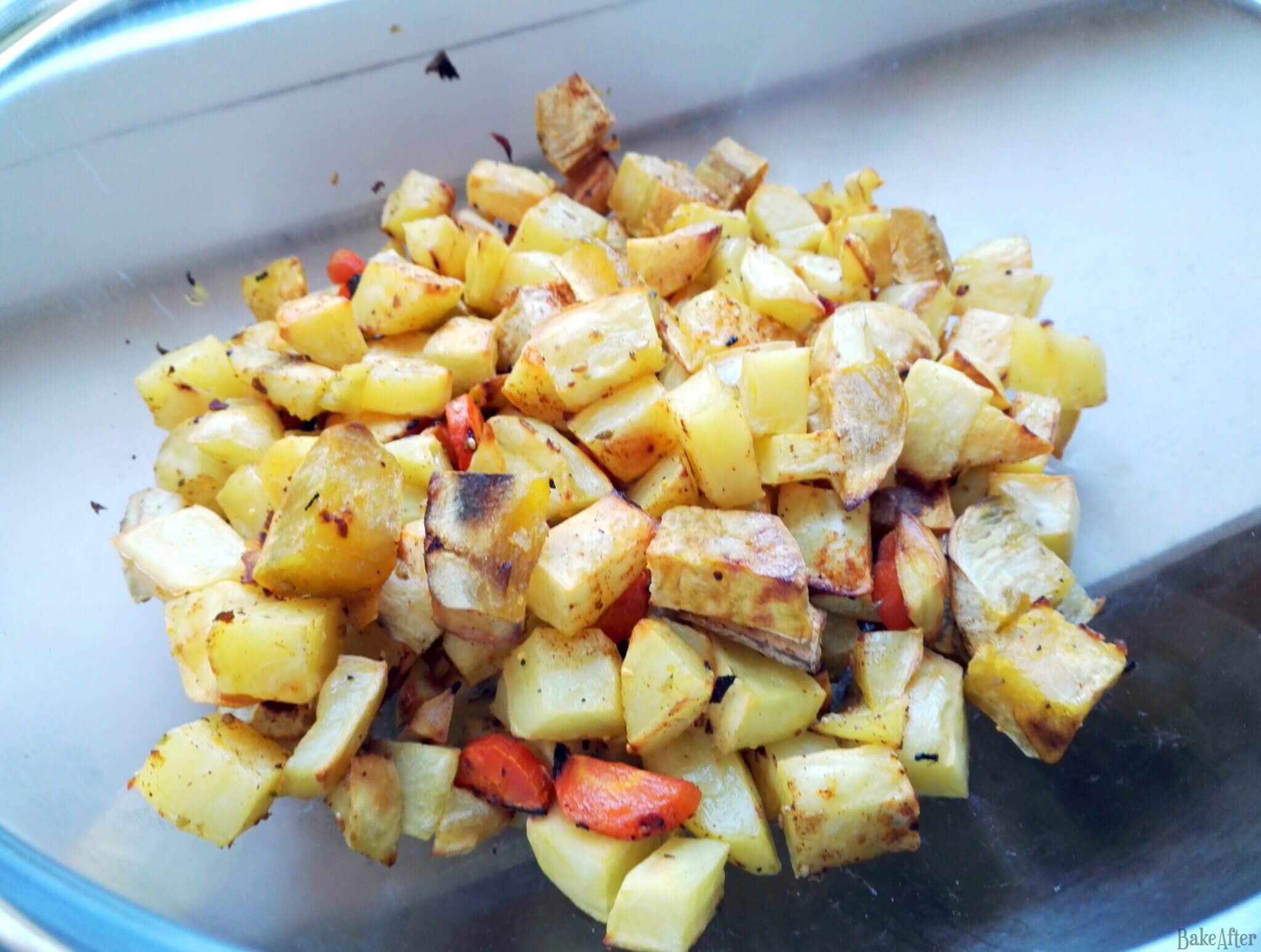 - Bake in a preheated oven at 180ºC (350°F) for about 45 minutes until the potatoes are well roasted.