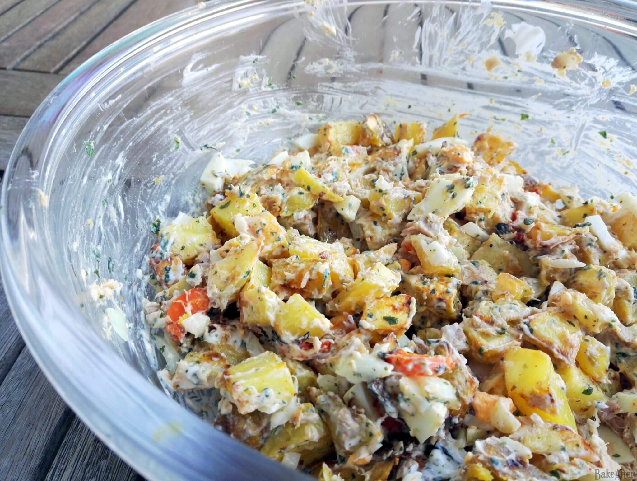 This recipe for Tuna & Egg Creamy Roasted Potato Salad was originally created on BakeAfter.com. Esta receita de Salada de Batata e Atum foi publicada em português no Iguaria.com.