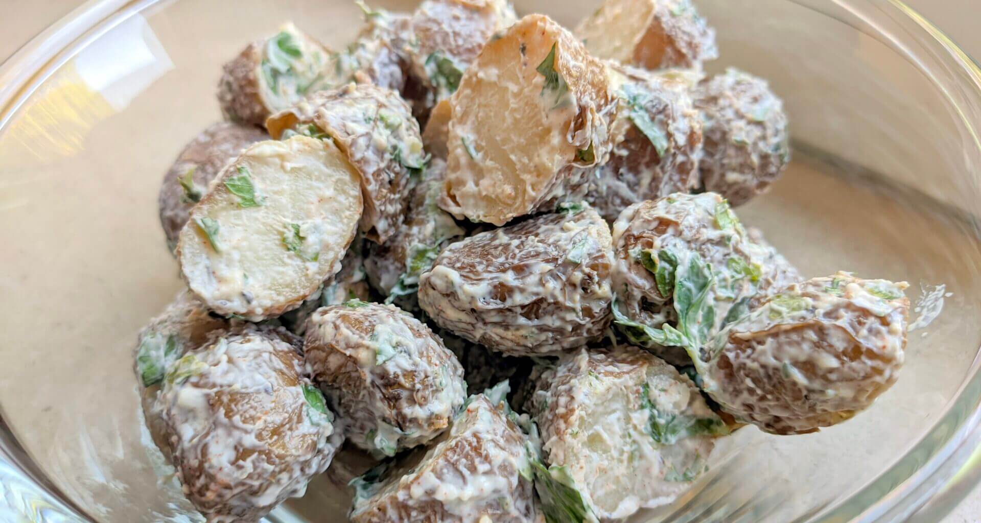 Garlic Herb Roasted Creamy Baby Potato Salad
